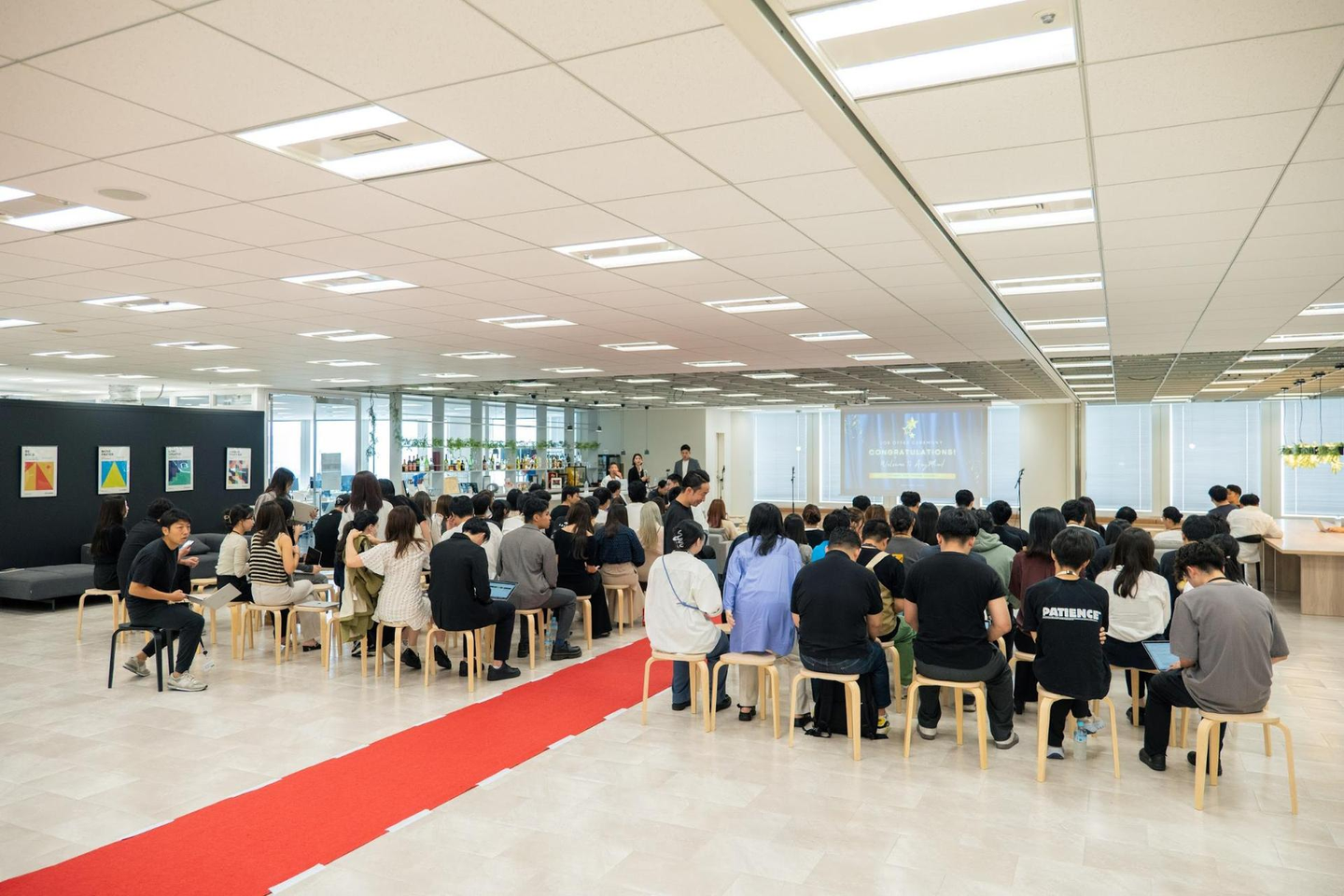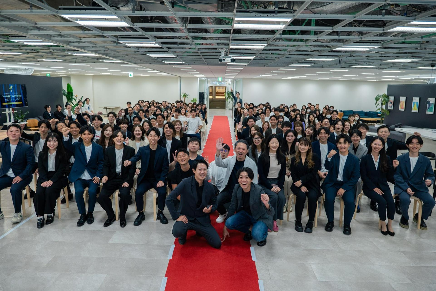内定式が行われる会場には、これから一緒に働く仲間として25卒内定者の皆さんをお迎えしようと社員の皆さんがフリースペースに大集結しました。