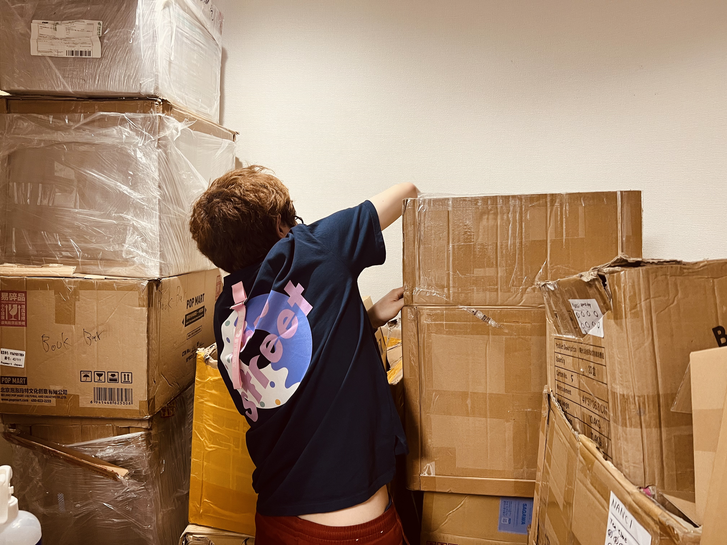 発送前の梱包作業時には、荷物でオフィスが少し狭くなります。写真は取締役の池野さん。いつもおつかれさまです。