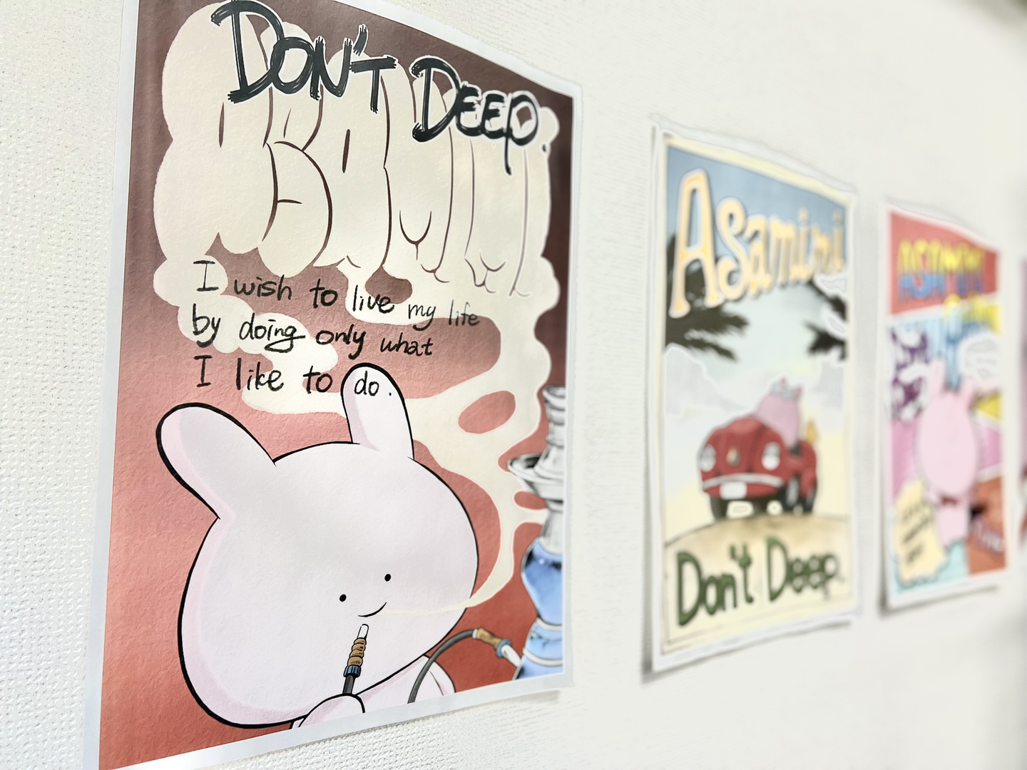 壁にあさみみちゃんのポスターが貼ってあります。(お手洗いとかにも)