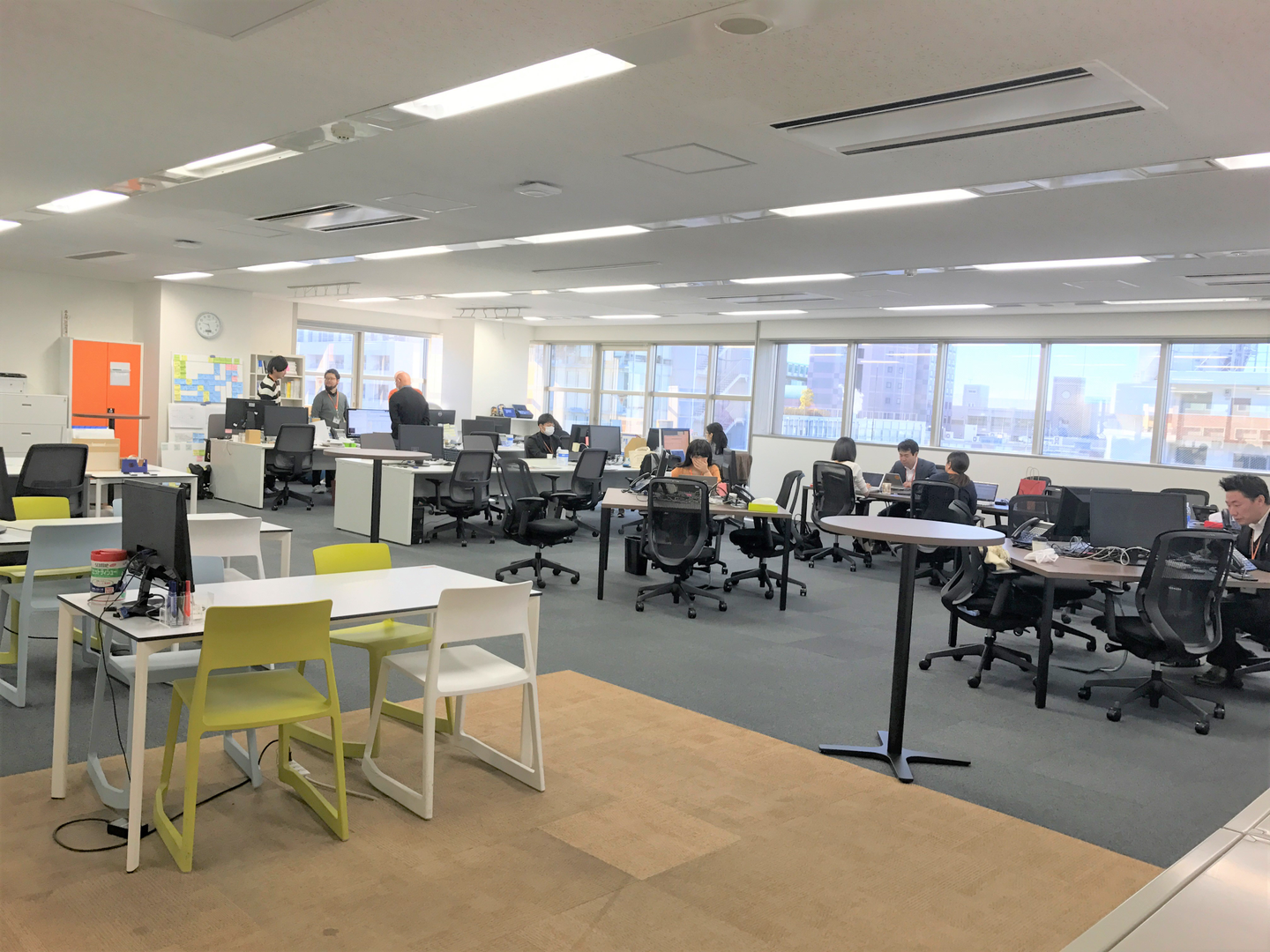 A:東京オフィスでは、フリーアドレスで各自空いている席に座ります。