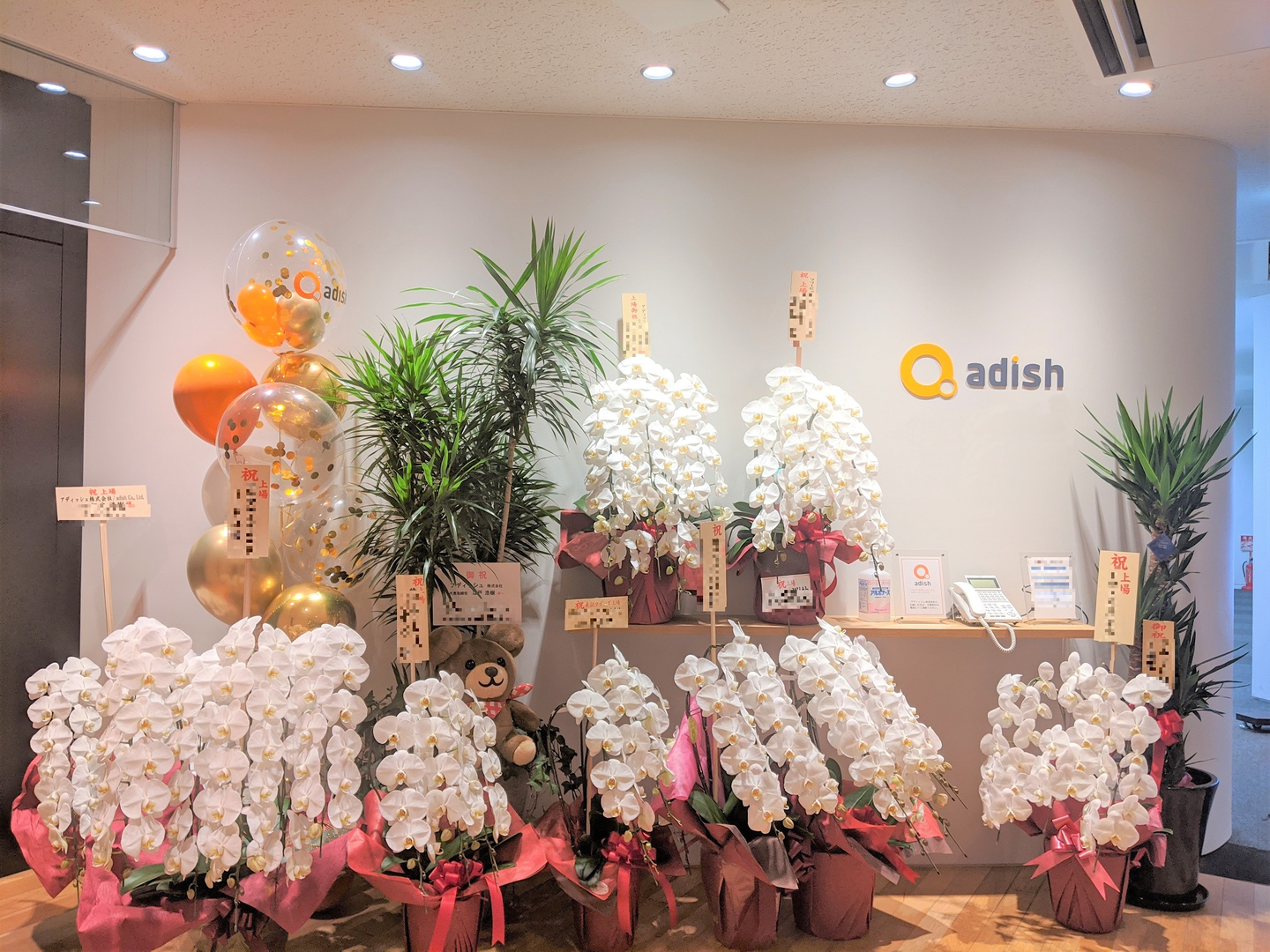 沢山のお祝いのお花をいただき、普段はシンプルなオフィスがとっても華やかになったのですが、新型コロナウイルス感染症の影響で、皆さんにご覧いただくことが叶いませんでしたので、この場を借りてご紹介させていただきます!