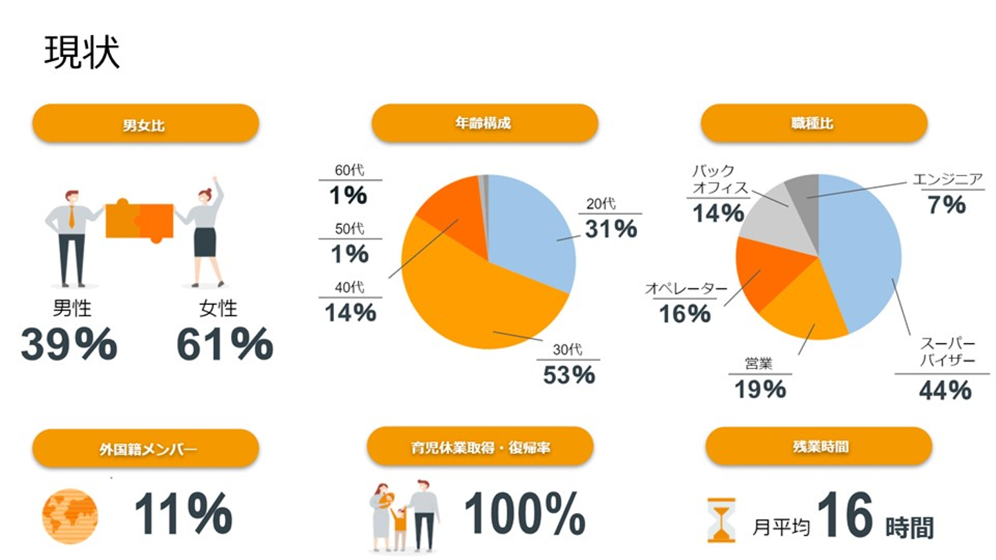 現状としては、会社を設立したときよりも、女性の割合が高くなりましたし、様々な年代・バックグラウンドを持った人が働き続けられる環境になりました。もちろん、まだまだ道の途中ではありますが、少なくとも、「アディッシュは女性が活躍していない会社だよね」と表現する人はいないのではないかなと思います。