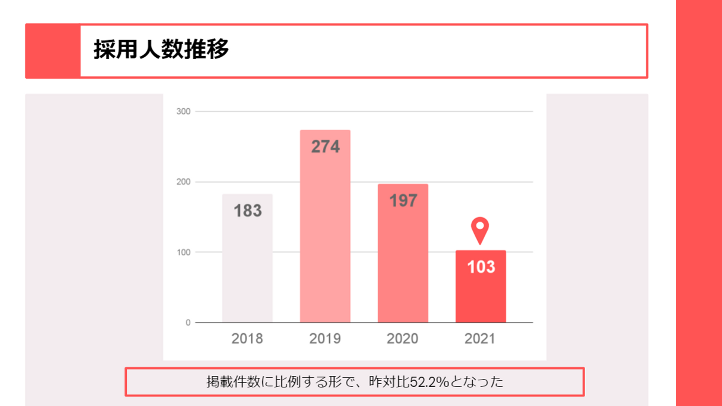 そして、気になる採用人数ですが、こちらも103名と、昨年と比べると半数程度で着地しています。