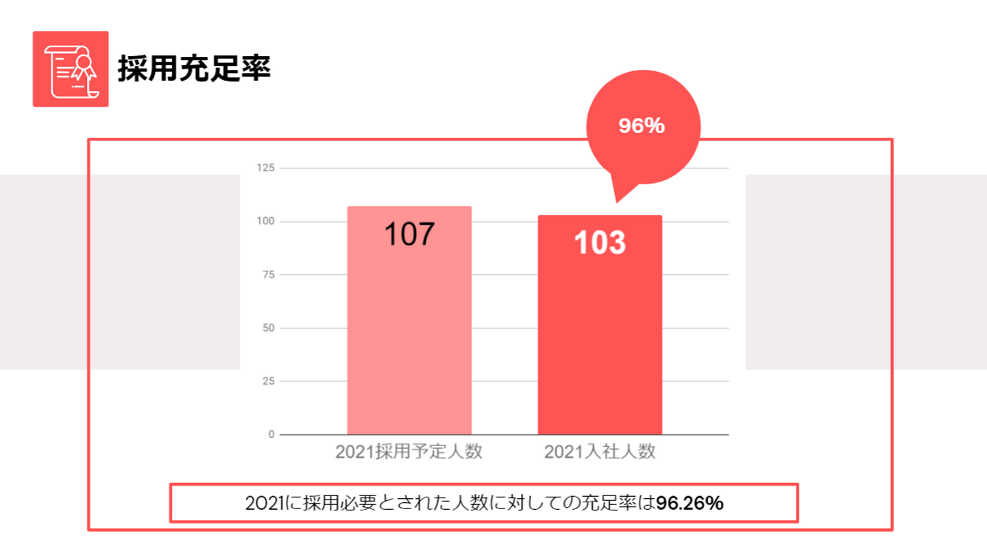 とはいえ、年初に必要とされていた採用計画からの充足率を出してみると96%と、ほぼ計画通りの採用が出来ていることが分かりました。