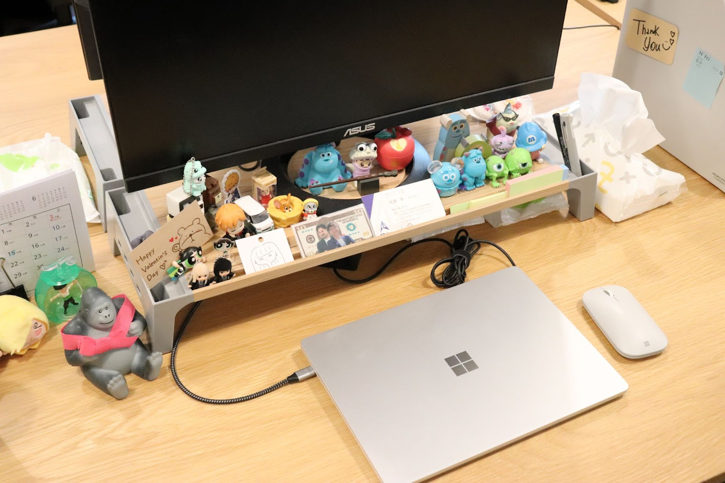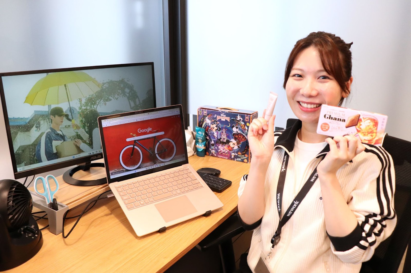 デスクはシンプルで整ったレイアウト。けれど、PCの壁紙には大好きなドラマのワンシーンを設定し、引き出しにはいつもチョコレートを常備。自分の気持ちが少しでも上がるような“ちょっとした工夫”が、忙しい日々の原動力になっています🏃♀️