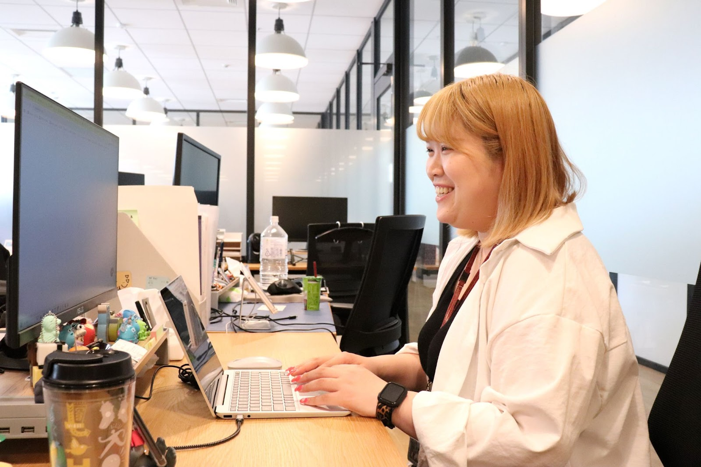 「ADrimって、“自分らしい働き方”を認めてくれる会社なんです!推しカラーのデスクもOK。自分だけの“心地よい場所”があるからこそ、自然と前向きになれるのかもしれませんね」