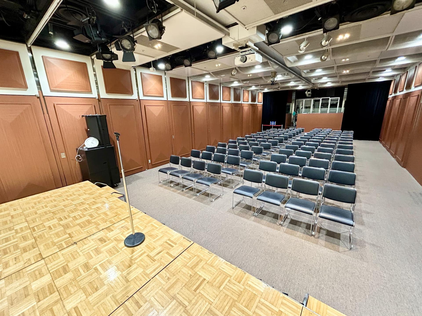 シアター形式では最大100名、スクール形式では60名まで収容できます。