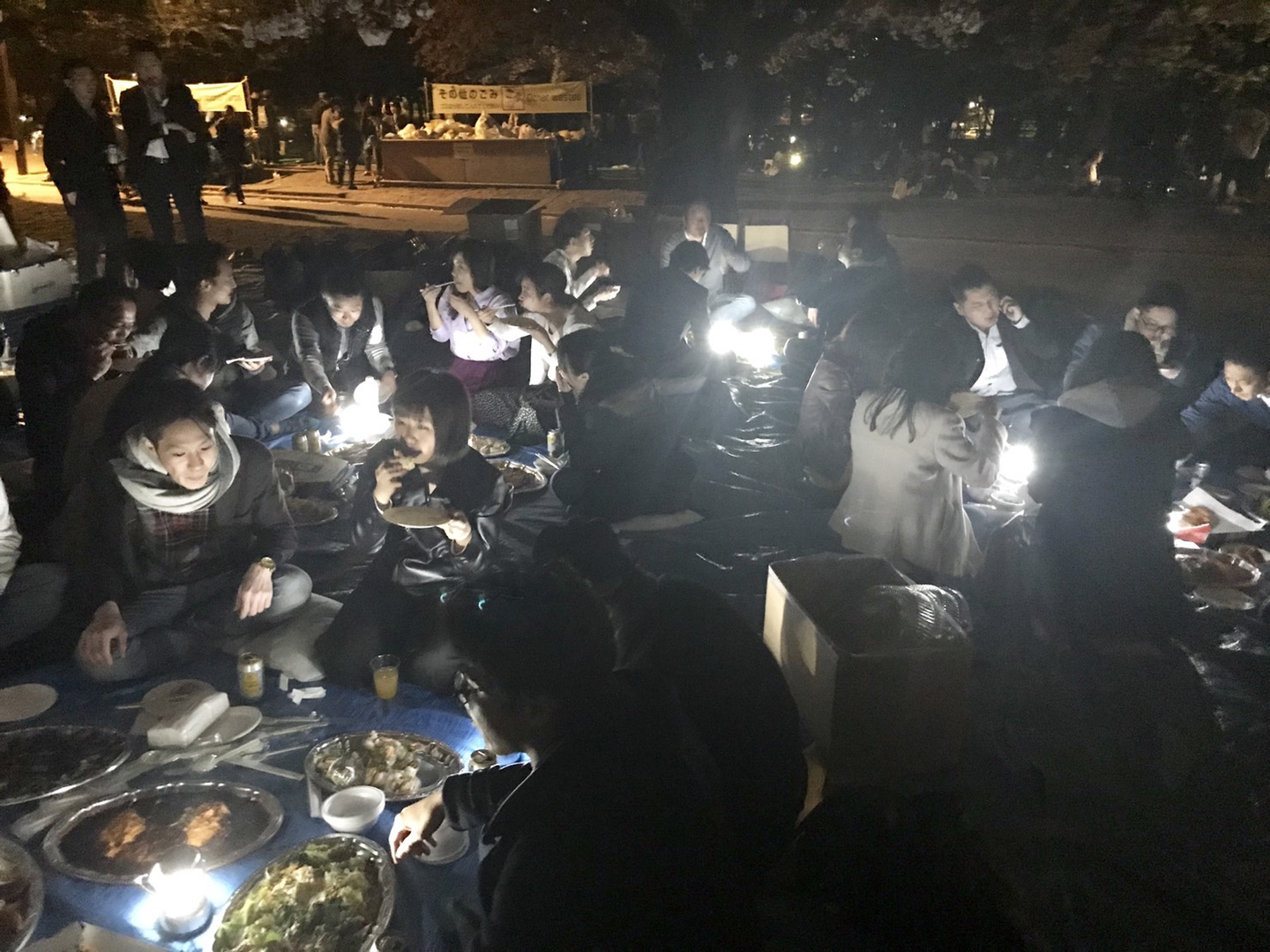 10名ずつくらいで1つの輪になって集まり、夜桜を見ながら飲んで♪食べて♪談笑♪ 普段あまり話す機会の無い他部署の社員さんとも、こういう時間でコミュニケーションが取れます!
