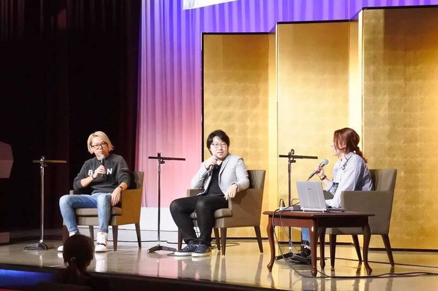 ▲アドウェイズの全社総会では土屋氏をゲストで招き、3人でパネルセッションを実施