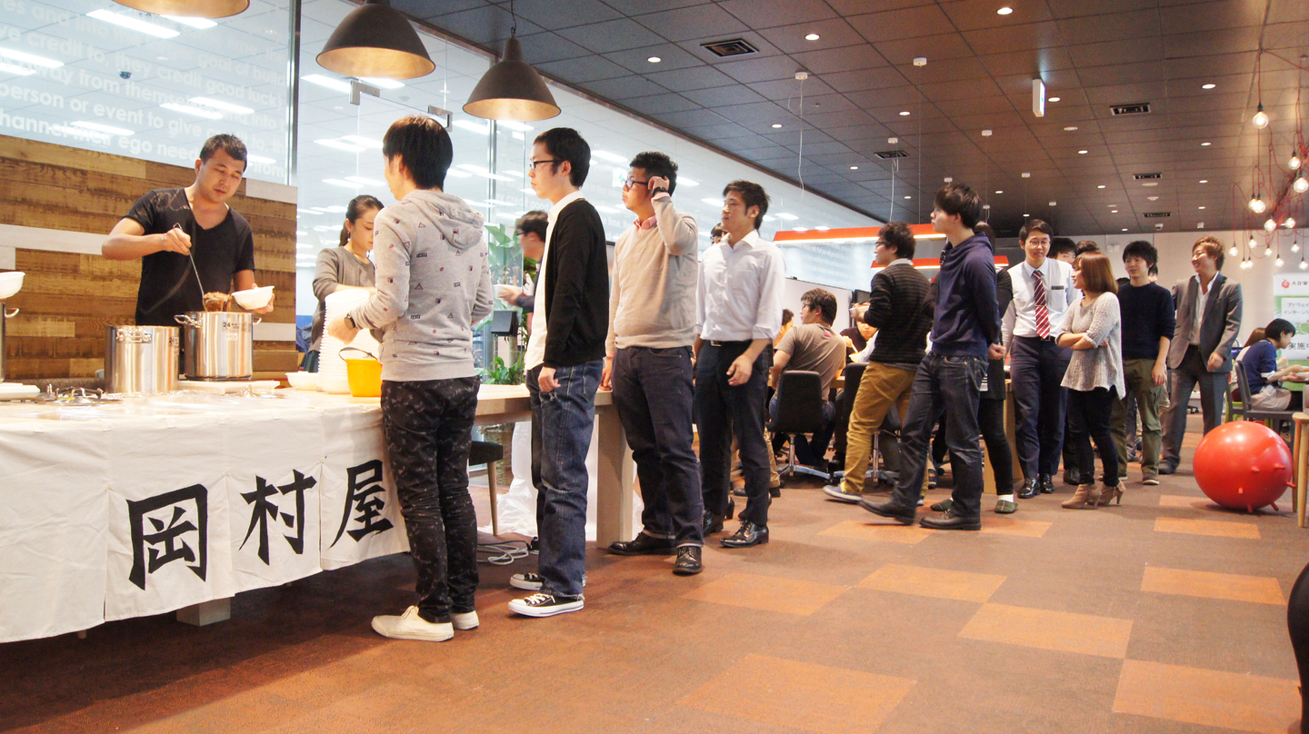 2014年10月のオープンから1年半以上が経った今ではすっかり恒例となり、社内の休憩スペースであるリフレッシュエリアには、配布前から社内の執務エリアまで行列が出来るほどの人気っぷり。