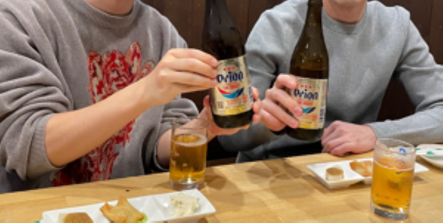 お昼はホテル内のバイキングの料理をお弁当に詰めて持ち帰れるサービスがあったので、ホテル内ですべてが完結します。もちろん仕事が終われば、ホテルの横の居酒屋さんでメンバーとの交流を深めるためのオリオンビールで乾杯です(笑)