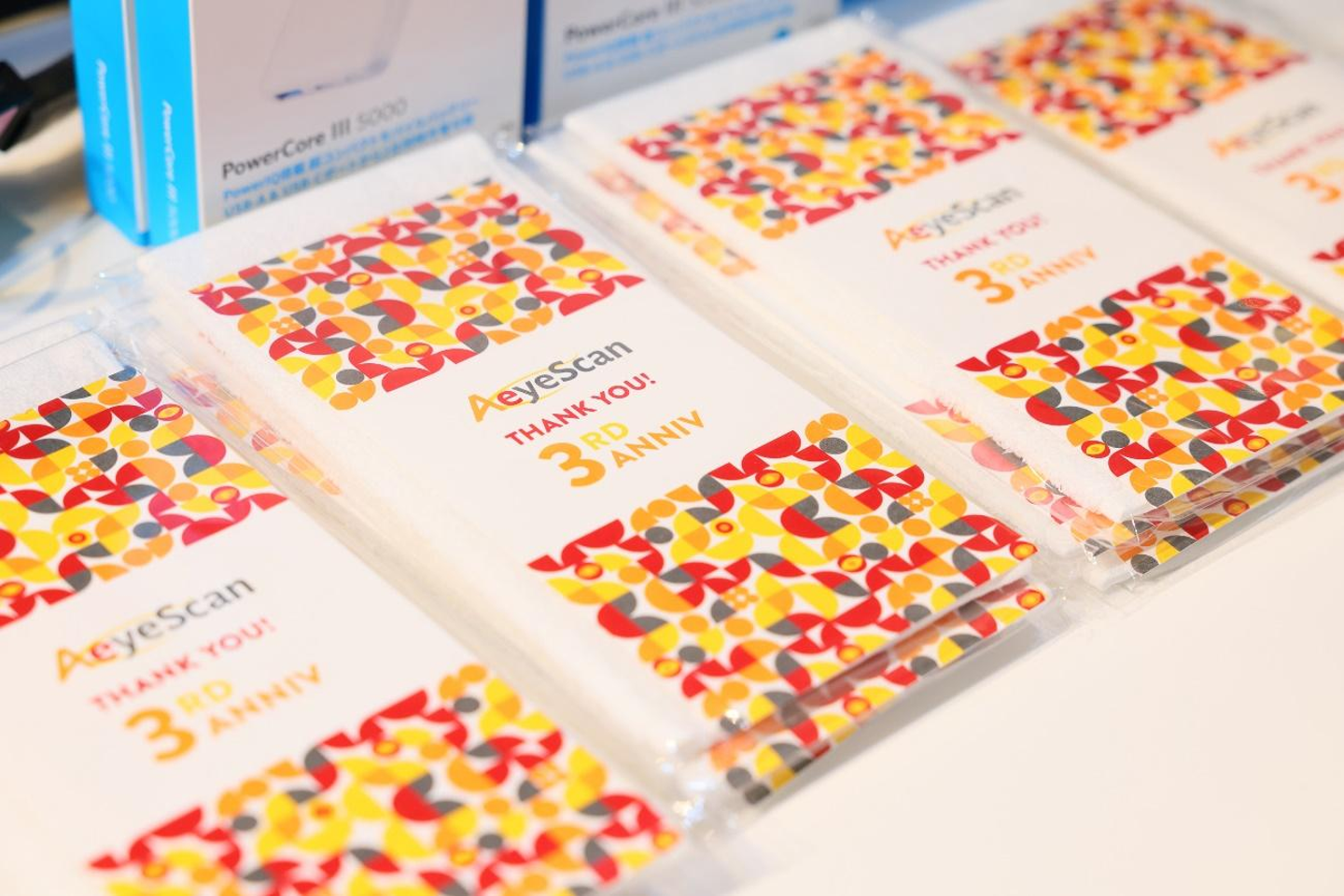 当社ブースにお立ち寄りくださった方には、ノベルティとしてAeyeScanリリース3周年記念デザインの今治ハンドタオル、モバイルバッテリーをプレゼント。また夜にはお酒や軽食が提供されるなど、カジュアルでありつつもラグジュアリーな雰囲気のなか、お客様とさらに交流を深めることができました。