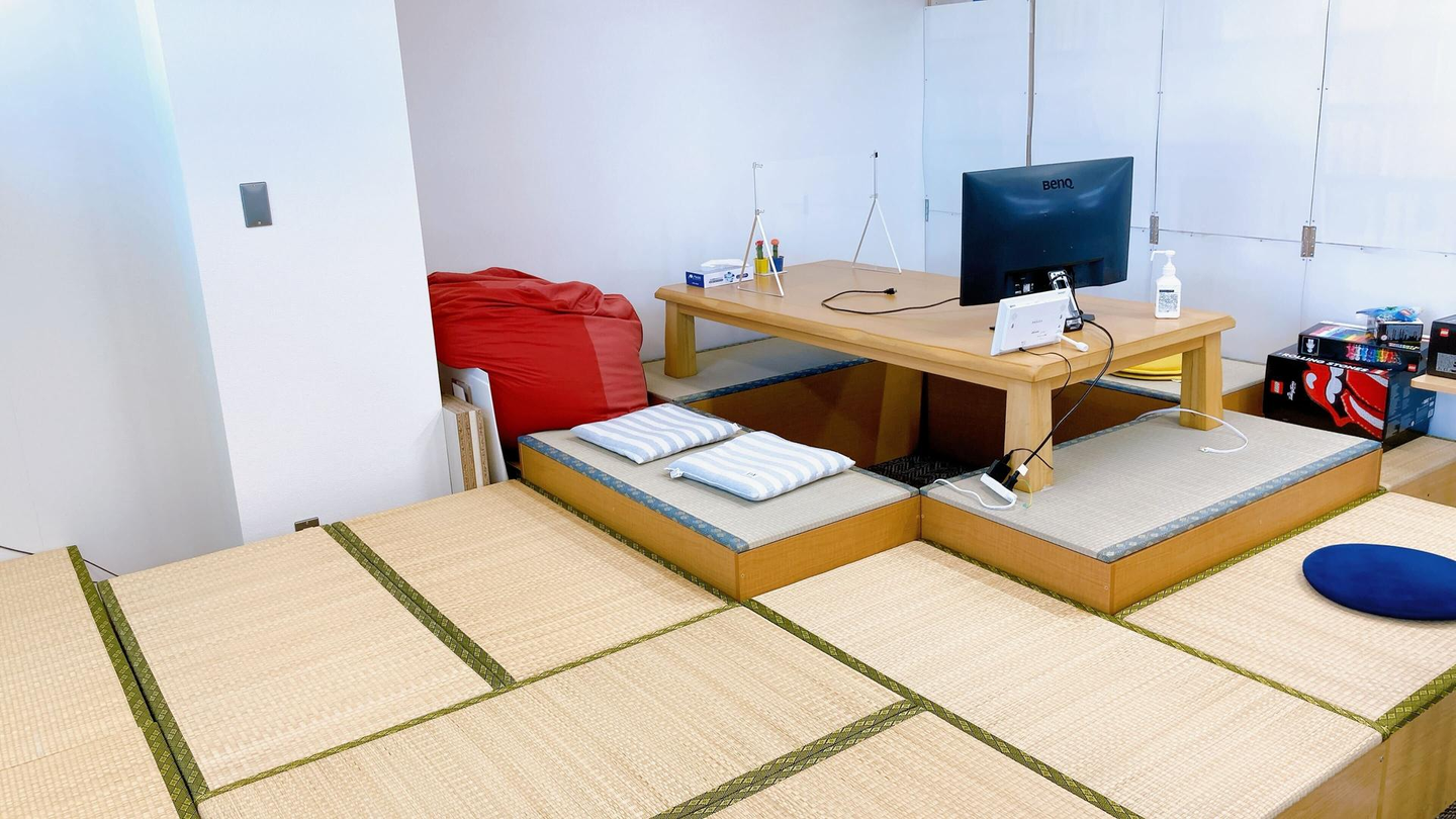 以前から好評だった畳スペースを増やし、広々と使えるようにしました。ちょっとした会議やランチスペースとして、ゆっくり足をのばしリラックスした雰囲気でコミュニケーションを取りながら仕事できる空間となっています。