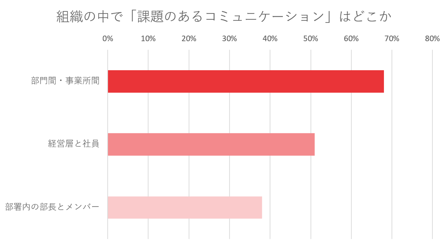 部門間・事業所間のコミュニケーションに課題を感じているという結果が出ています。
