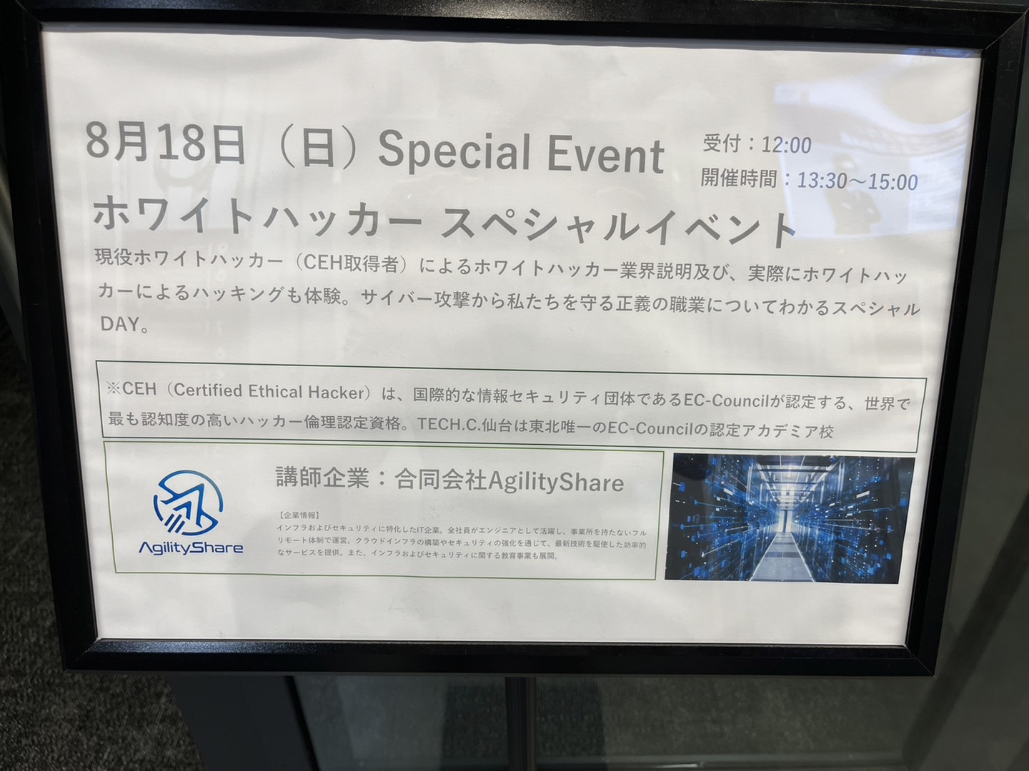 先日、仙台専門学校のオープンキャンパスにて、次世代のITエンジニアを育成するための特別セキュリティイベントを行いました!