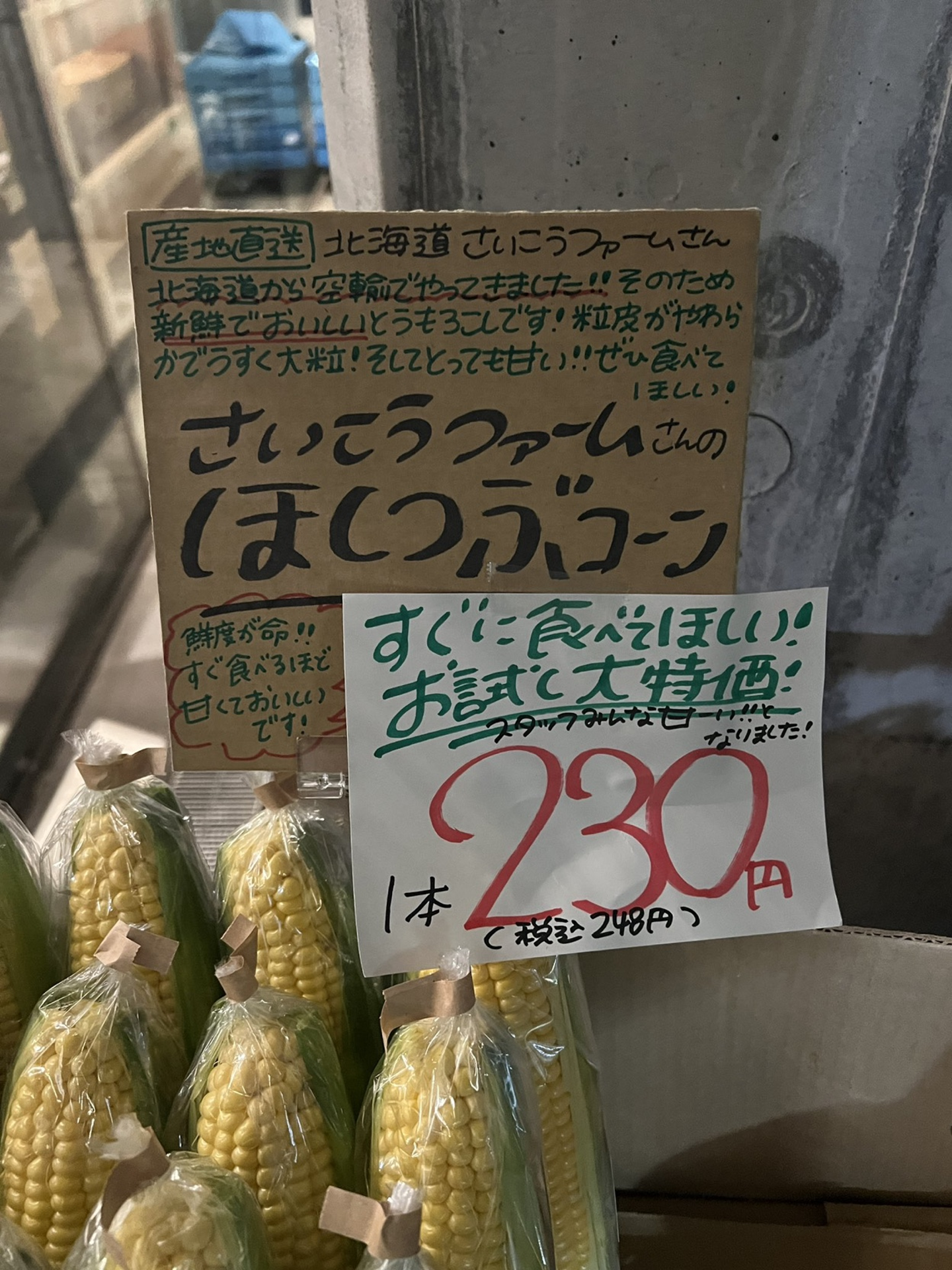 具体的な品目として、とうもろこし・長芋・じゃがいも・ブロッコリー・トマトなど一部商品の輸送・旬八青果店での販売をおこなっています。