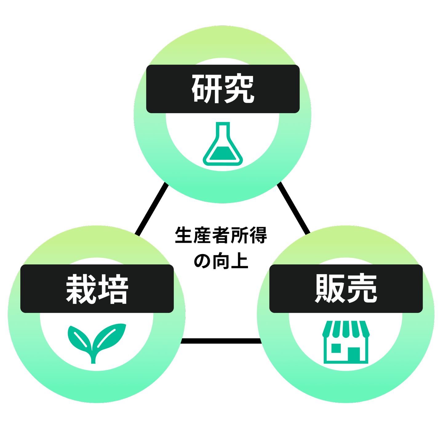 そこでAGRI SMILEでは、「現場力」「研究力」「開発力」を活かし、産地のパートナーとして、ともに課題解決に取り組んでいます。現場を理解し、自分たちのリソースを組み合わせて最適な取り組みを提案し実行することが、産地の発展につながると考えます。