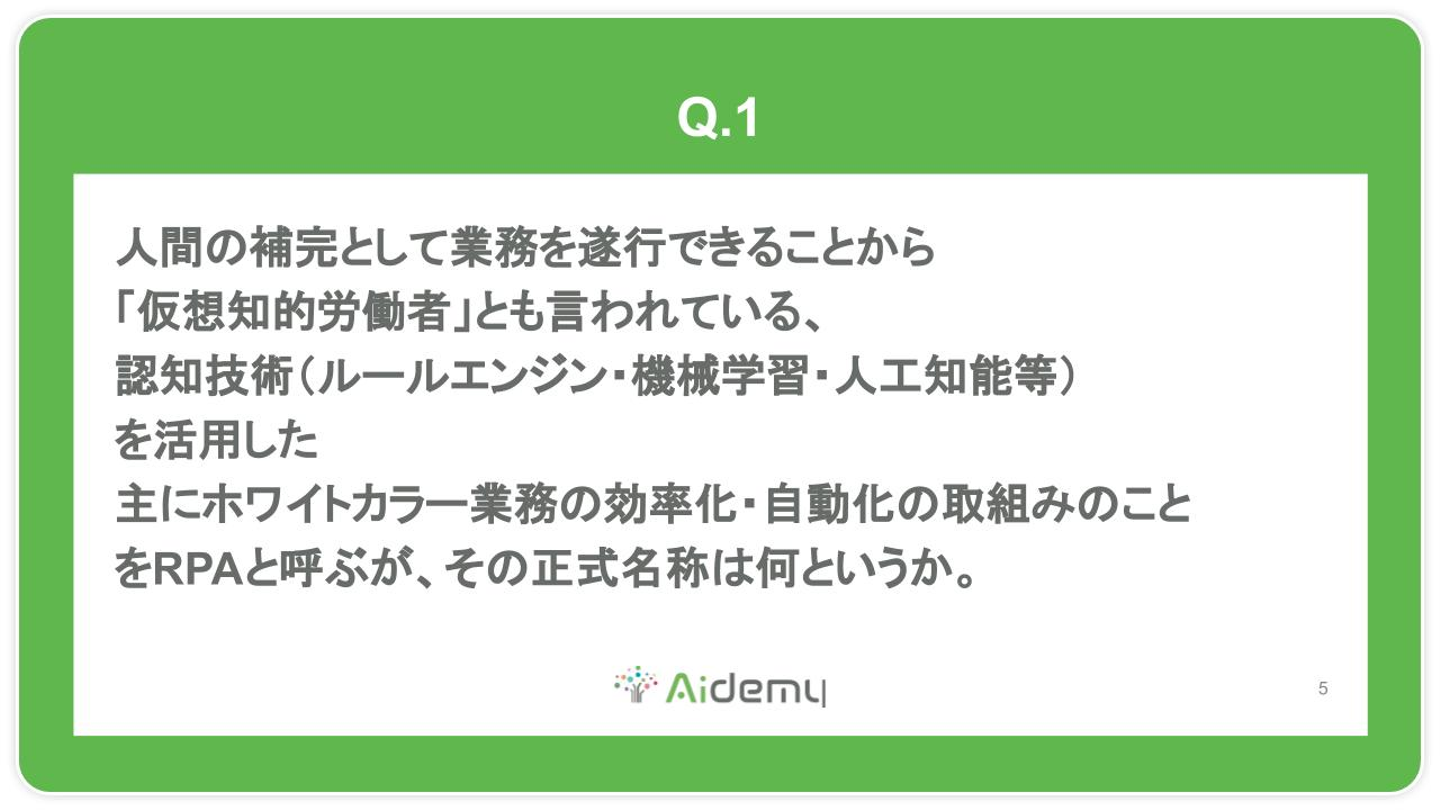 ちなみにこれ早押しだったので、途中で手を挙げて「RPA!」と答えがちなひっかけ問題でした。