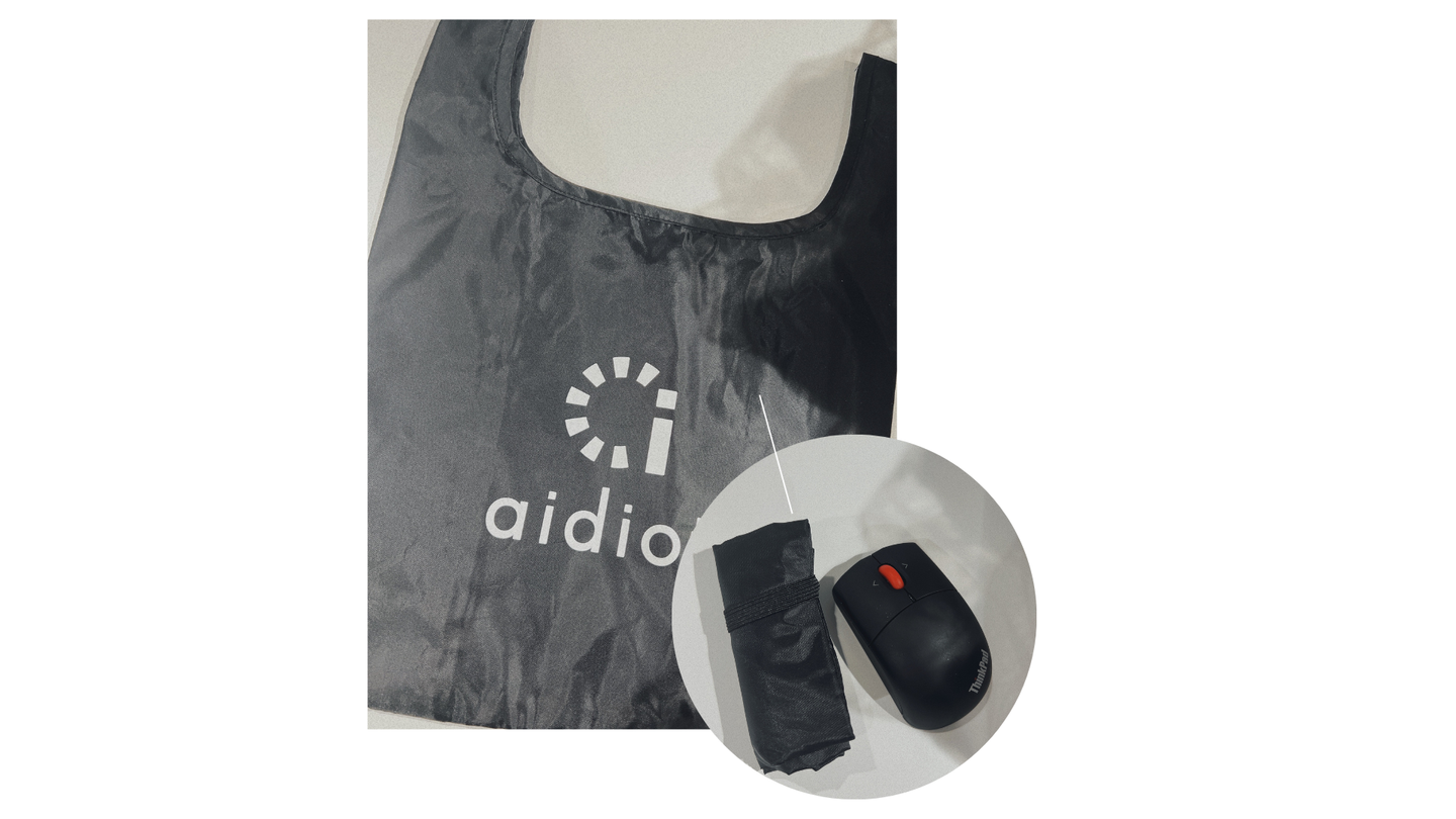 ビニール袋有料化に伴い、エコバッグは必須と言われる時代となりました。オフィスで居るときだけではなく、日常でも使えるようにと選びました。折り畳むとマウスくらいコンパクトに!