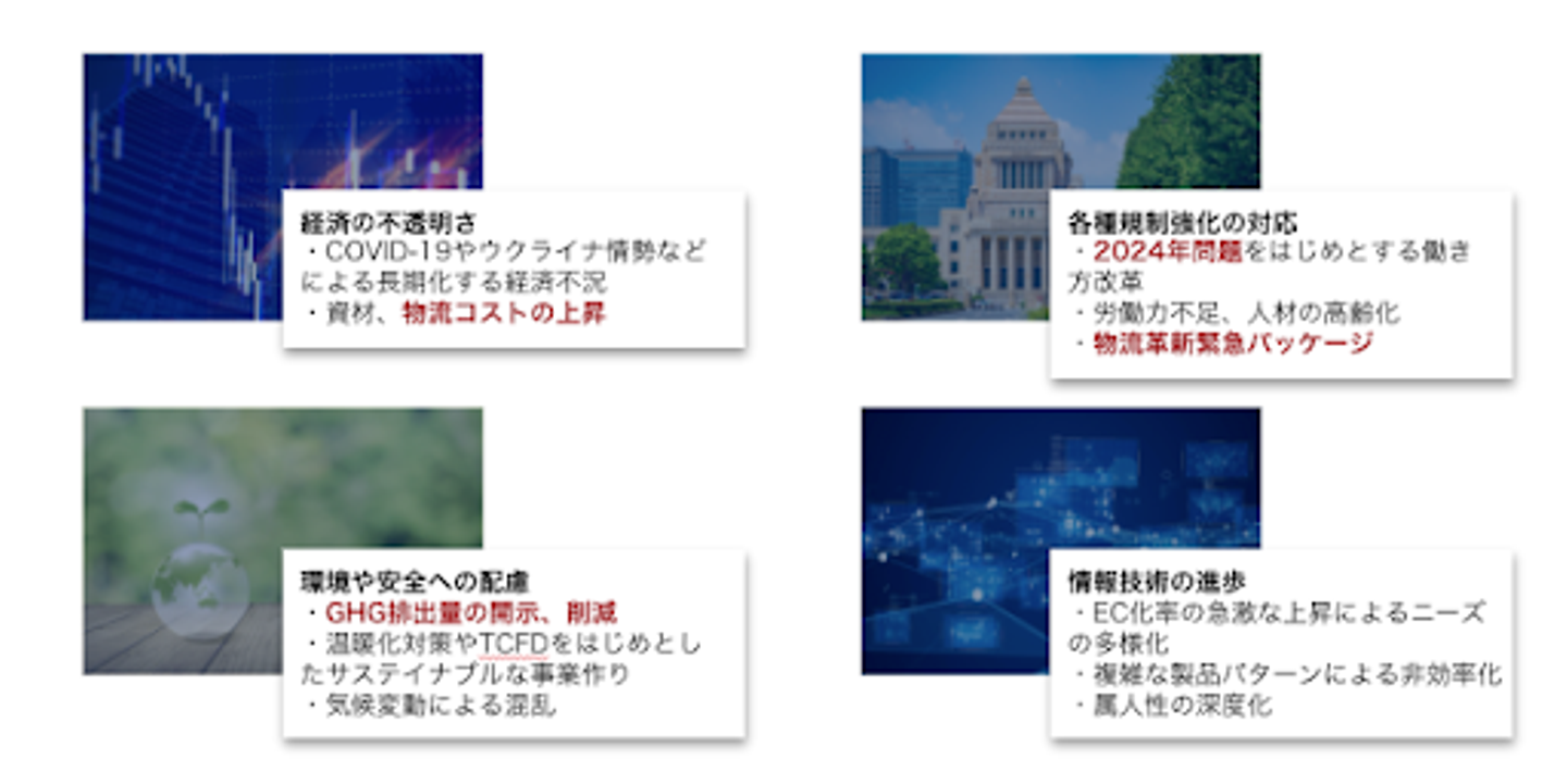 2024年問題やカーボンニュートラルなど物流業界が抱えている課題は非常に根深く、このままでは35%の荷物が運べなくなると試算されています。この社会課題に対して、物流革新緊急パッケージを皮切りに、国会において、特定事業者にCLOの選任が義務付けられている「改正物流総合効率化法」も可決し、今後ますます物流・サプライチェーンの効率化が求められています。