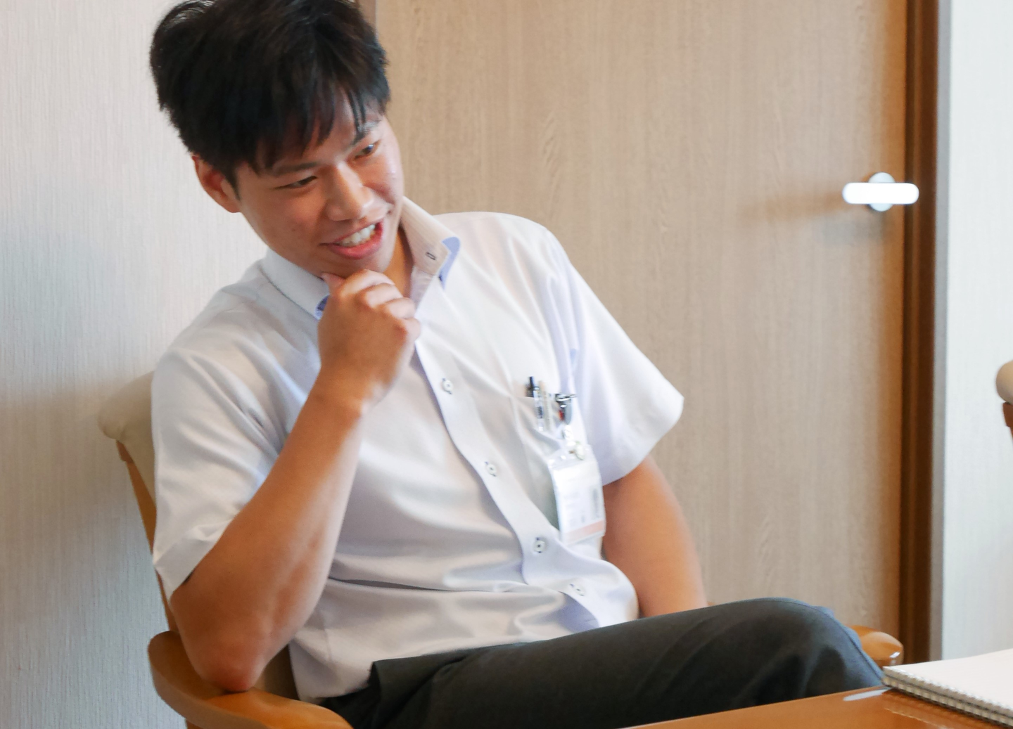 面接スタート。結構緊張しますが、いきなり「宗形!今期はなにを頑張ったんだ!言ってみろ!」なんて怒鳴られることはありません。