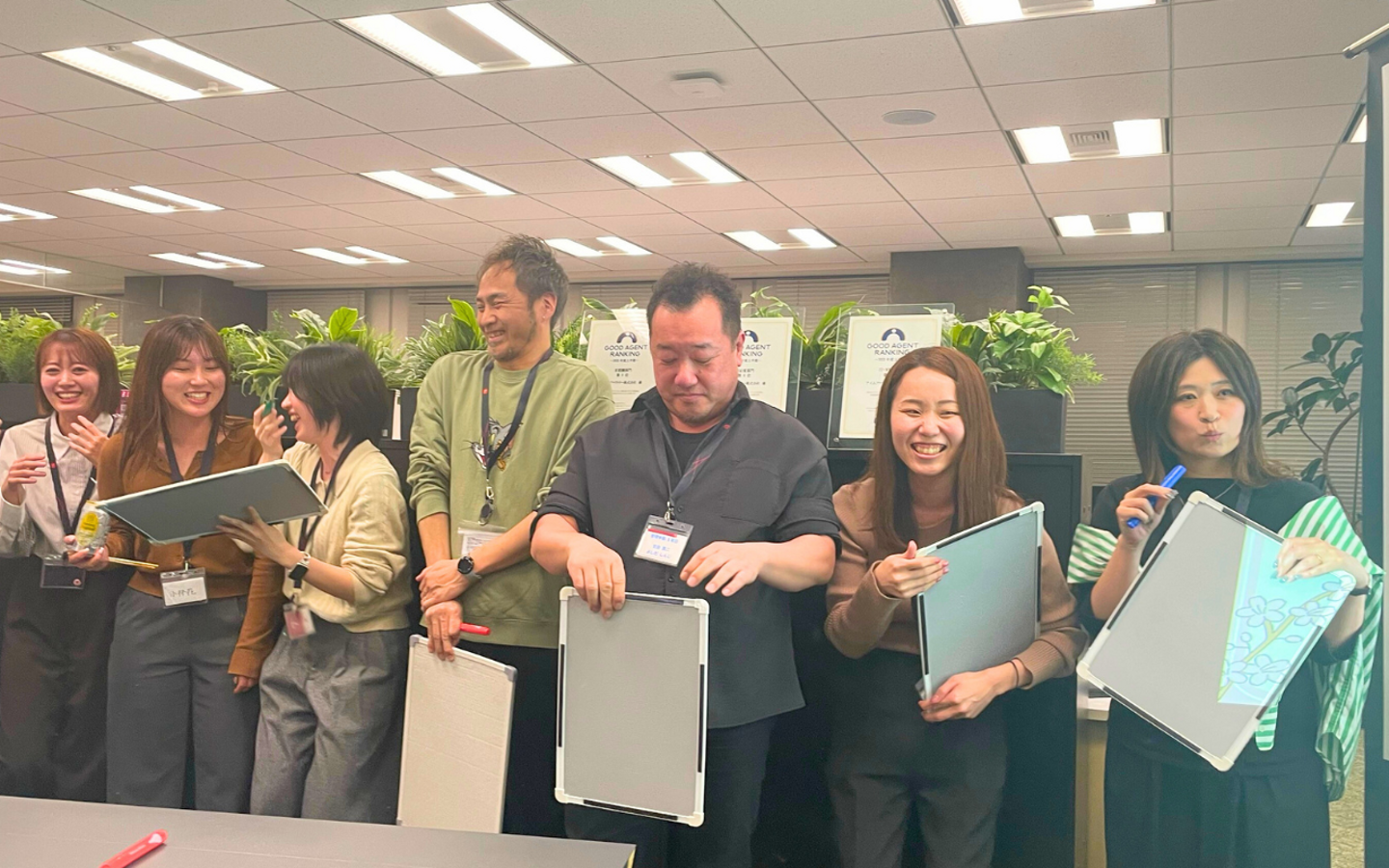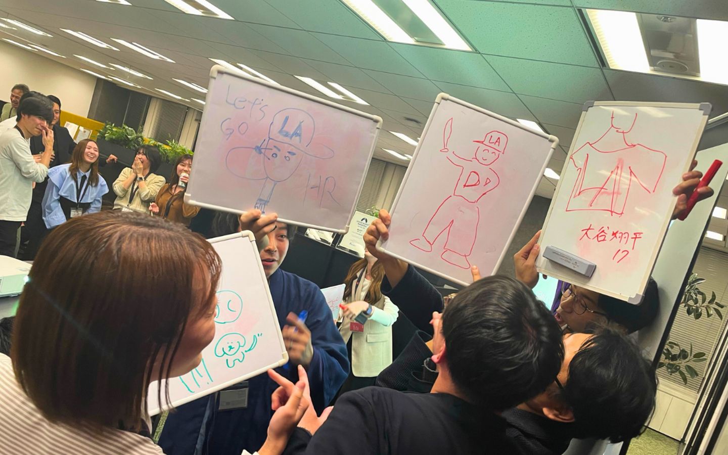 チームバトルでお題に沿った絵を描いて競いました。優勝チームにはスタバカード。これが予想を超える盛り上がりに!