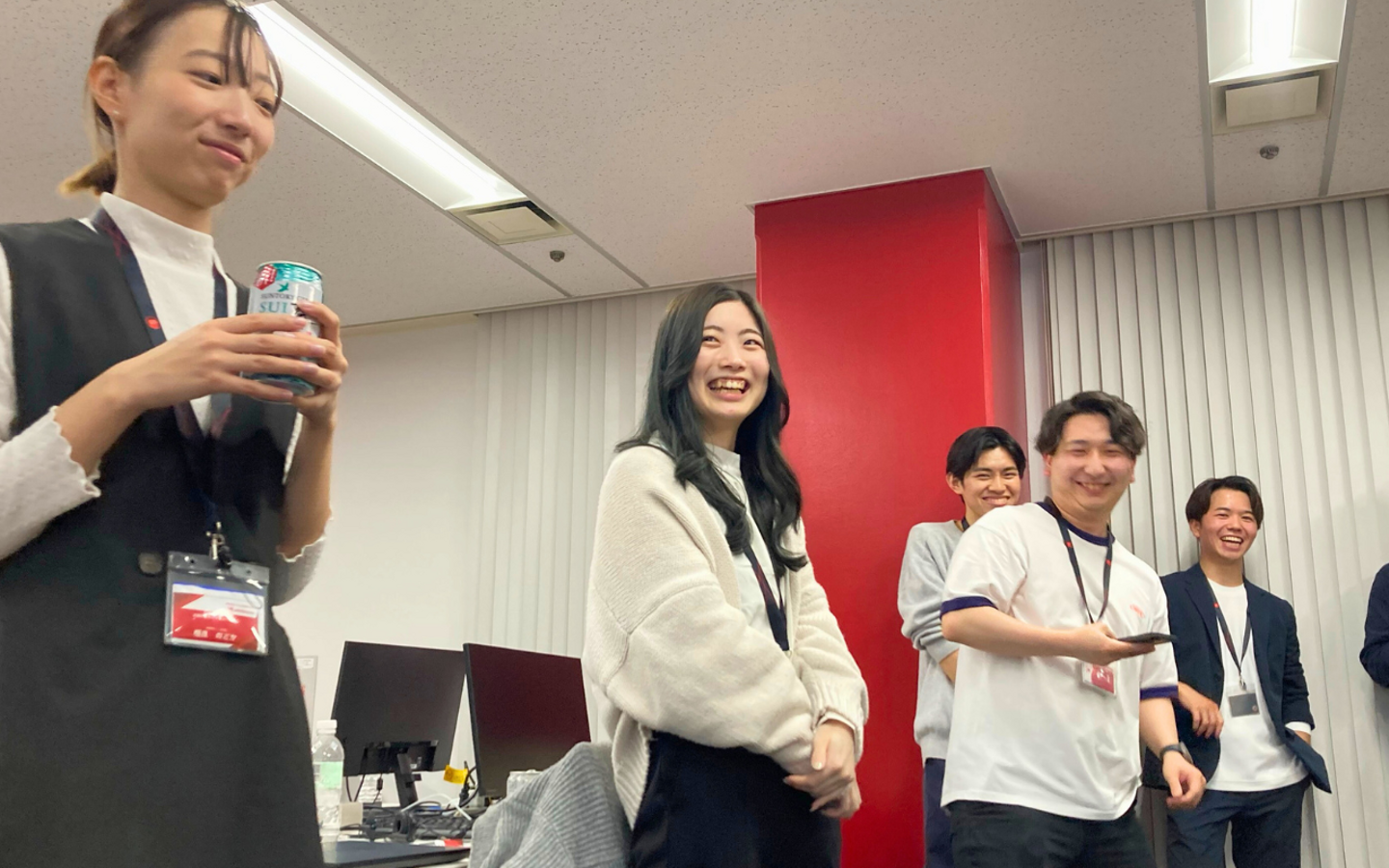フレッシュな風を社内に吹き入れてくれました。自己紹介タイムも歓迎ムードでさくっと終わるかと思いきや、みんな自己紹介として喋り倒します。無人島に行ったことがある、挫折を乗り越えて今がある、など個々の魅力をたっぷり伝えてくれました。