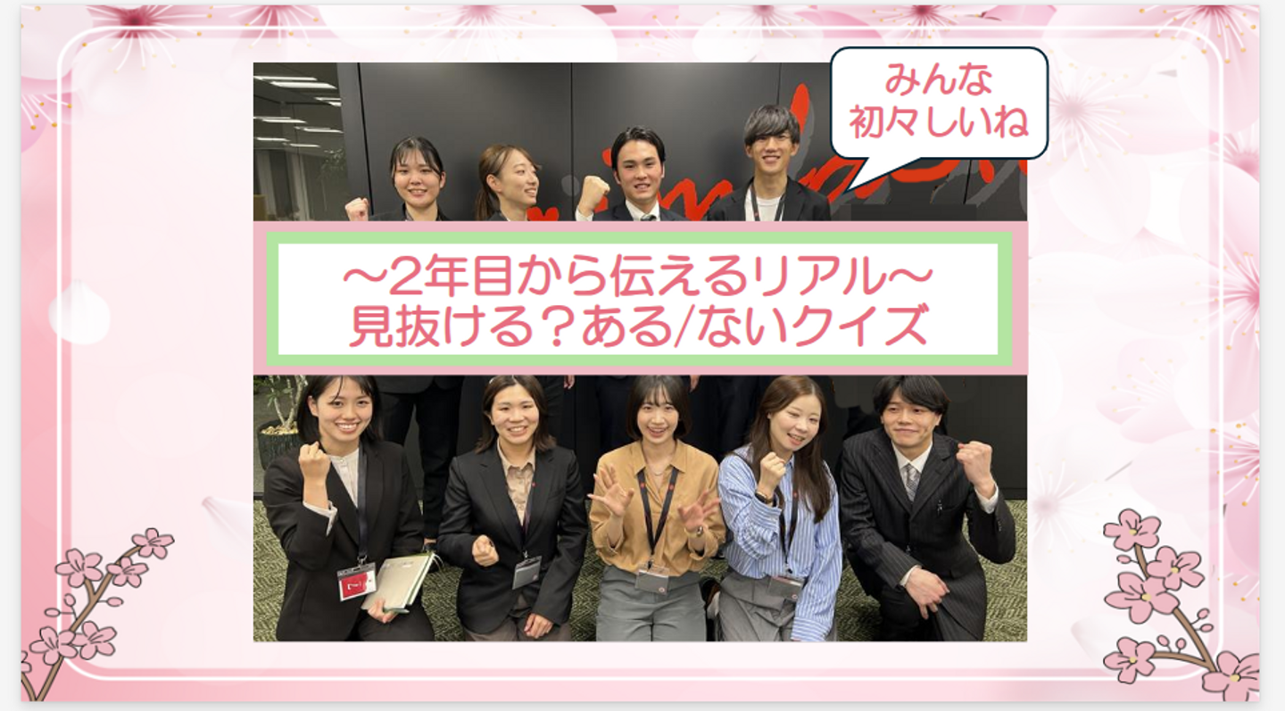 アイムファクトリーあるあるをテーマに、2年目の先輩たちからクイズを出題!「これって本当?」と、周囲との会話が弾むきっかけに。疑問は理解の始まりなのです。