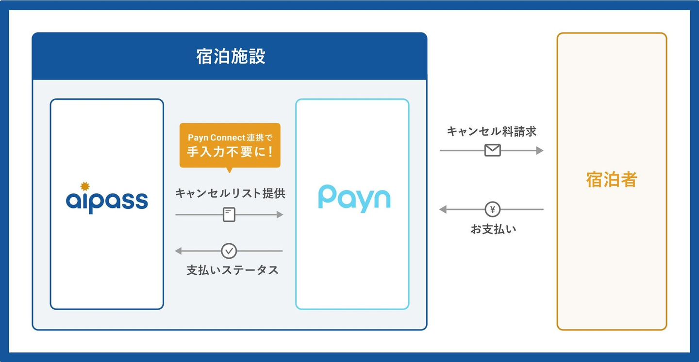 宿泊・旅行業のDXを推進するaipass株式会社(本社:東京都渋谷区、代表取締役:辻 慎太郎、以下 アイパス)はPayn株式会社(本社:東京都中央区、代表取締役CEO:山下 恭平、以下 Payn)と業務提携し、「Payn Connect」との連携を開始いたしました。