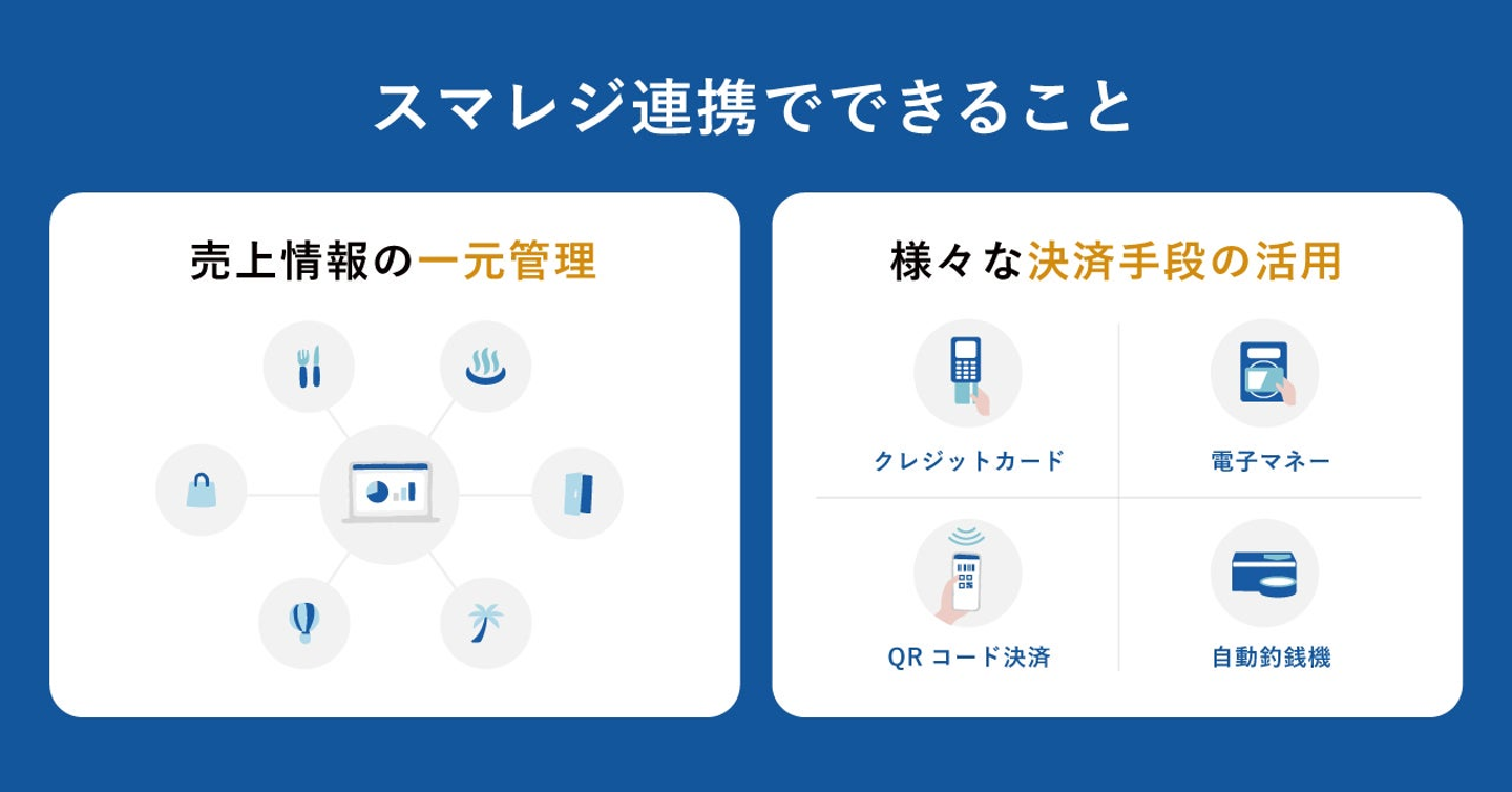 そこでこの度アイパスは、宿泊業界を含め幅広い業種39,000店舗以上に導入実績があるクラウドPOSレジ「スマレジ」との連携を開始することで、宿泊業における会計業務の課題を早期に解消してまいります。本連携ではこれまでレストランなどの付帯施設を運営する宿泊施設において、アナログな管理方法や分散していた売上情報を様々な決済手段に対応したスマレジを活用し、デジタル化と一元管理をすることで業務の効率化を実現します。