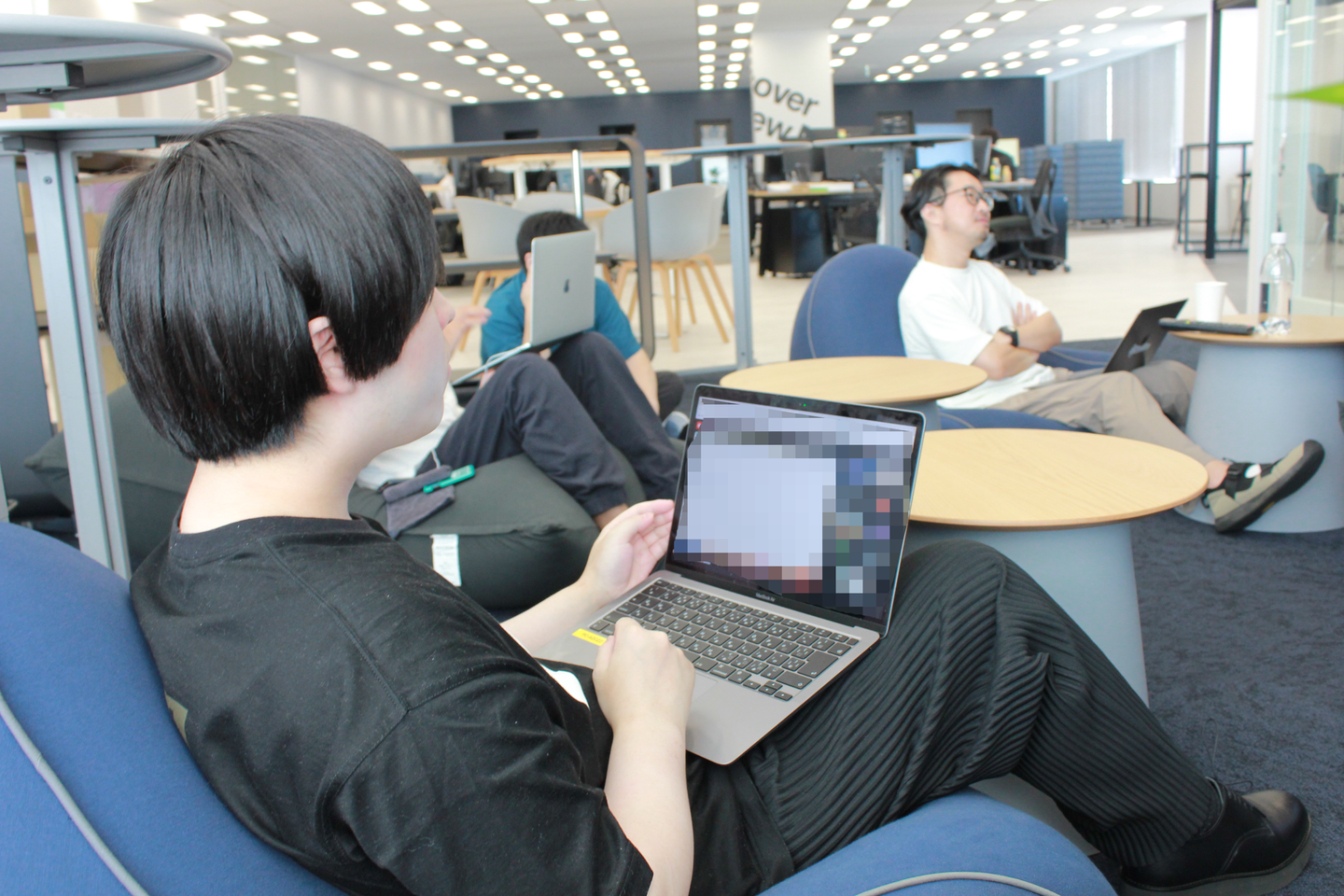 清水:私はフレックスタイム制で働いていますが、10時30分からはチームの朝会があるので大体10時に出社をしています。オフィスで働く方がモチベーションも上がりますし、メンバーとのコミュニケーションも取りやすいので大体週1日〜2日は出社をしています!