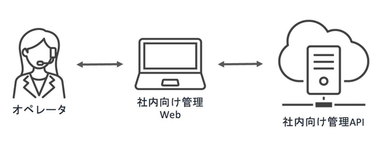 サービスの流れには含んでいませんが、お客様の情報を確認・編集したり、クーポン等を発行したり、発注管理を行ったりと、社内でサービス運用のために使うシステムです。