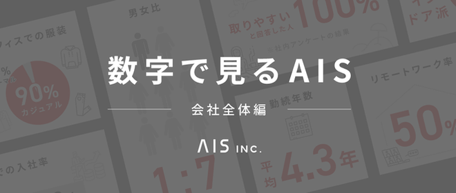 良いシゴトとは何でしょうか? AIS株式会社は「良いシゴト」を創り出す根本には「良い環境」があると考えます。 「良い環境」は、私生活や会社、チーム、福利厚生、お給料…と多岐に渡ります。 相手に「ありがとう」「頼んで良かった」と評価をされるシゴトを創るには まずは自分たちが「良い環境」に居なければならないと考えています。 AISは「良いシゴト」をする為に、 メンバーの働く環境を良くしていき、関わる全ての人へプラスを伝播していきます。