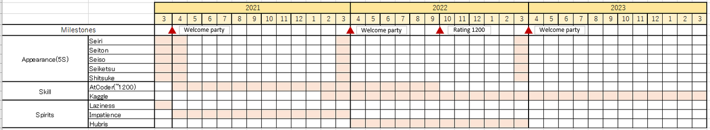 清:最後に、WBSを作成して長期的なMさんの最強プログラマー化計画を考えてみましょう。最短のマイルストーンを4/1に設定して、そこから半年、1年、3年くらいの時間軸でどのように行動すべきかを考えていきます。