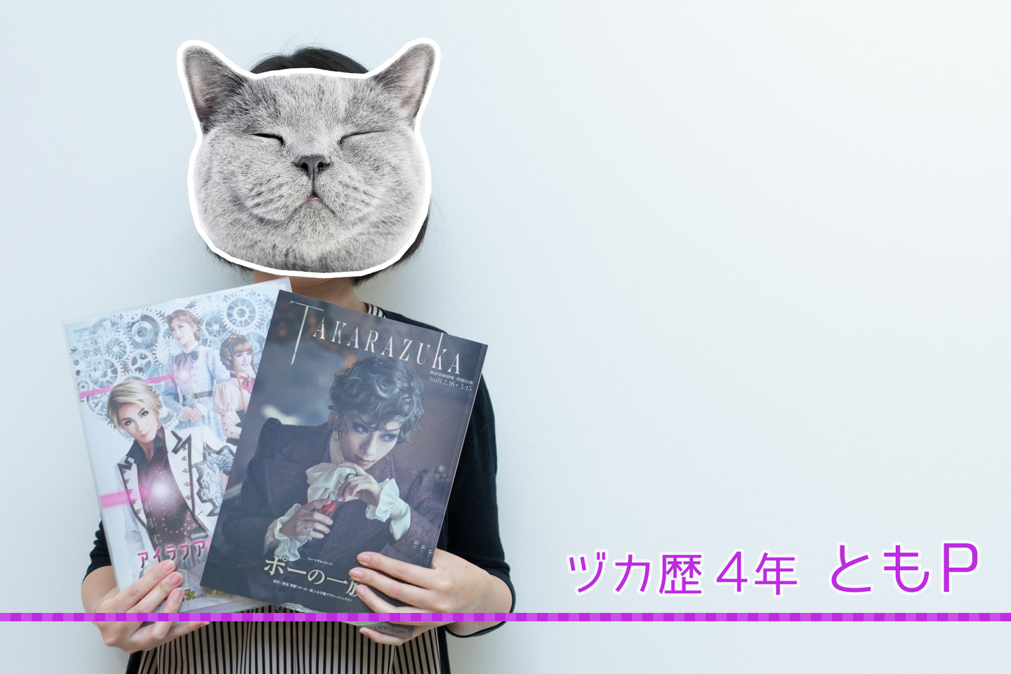 2014年、九州在住時に母の付き添いで博多座公演(月組)を観劇しヅカ沼の入り口に立つ。その後雪組にご贔屓さまを見つけるも、3週間後に卒業されることを知る。悲しみに打ちひしがれ、次なるご贔屓さまができたらムラ(本拠地)か東京近辺に引っ越す事を心に誓う。2014年末に花組に現ご贔屓の冴月瑠那様を見つけ、無事上京し現在に至る。瀬戸かずや様、愛月ひかる様、桜木みなと様、和希そら様も好きです!
