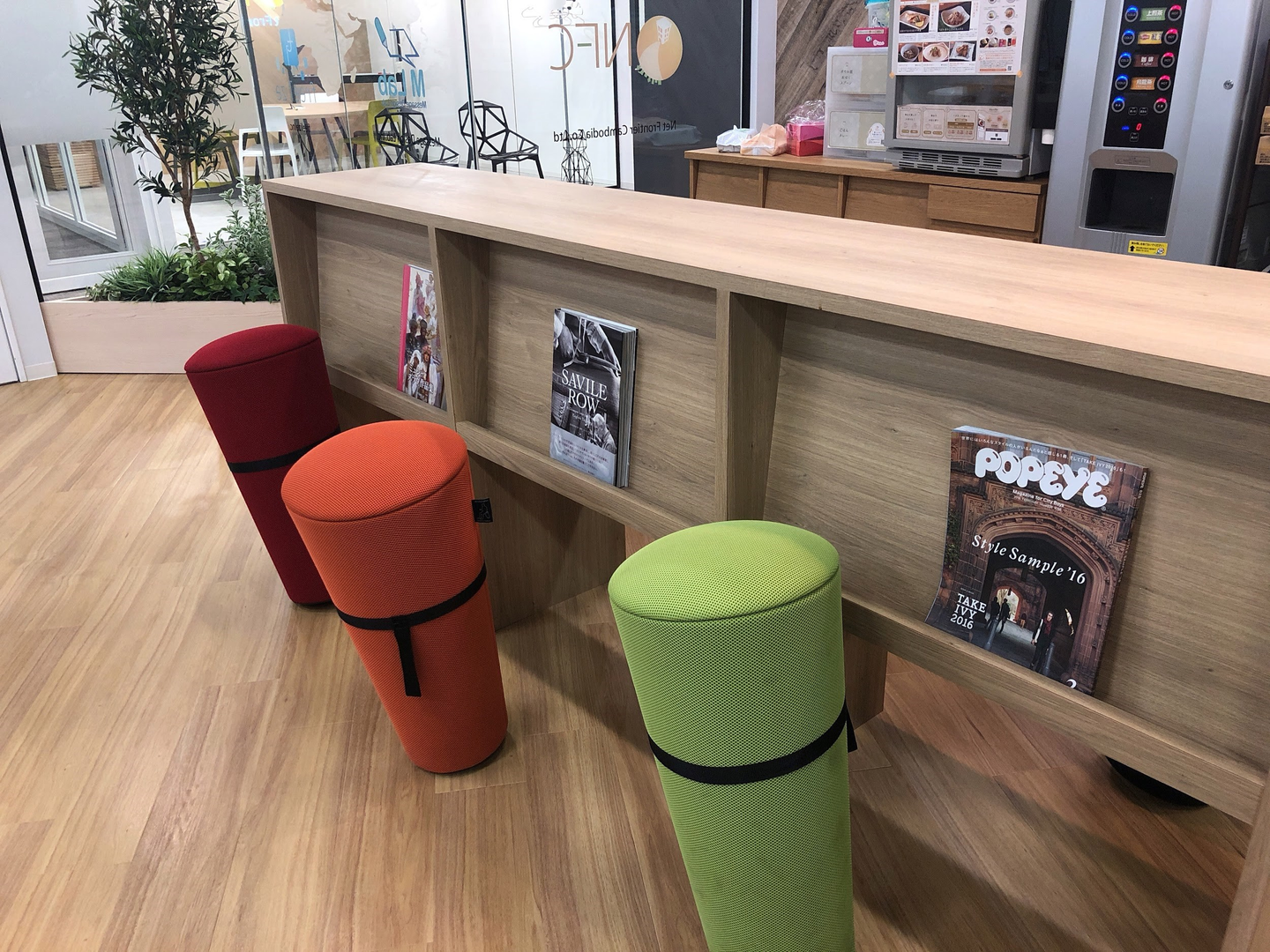元々ネットフロンティアには、ランチやミーティングで使用する「リフレッシュスペース」がありました。が、座席数が少なく、ランチの時に使うメンバーに偏りがありました。