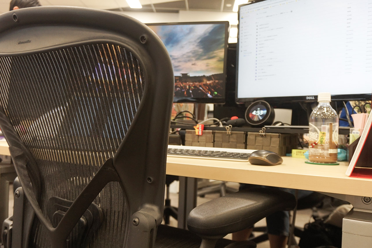 勤続5年以上のメンバーには、人間工学、人体の運動理論に基づいて設計された高機能ワークチェア「アーロンチェア」が支給されます。