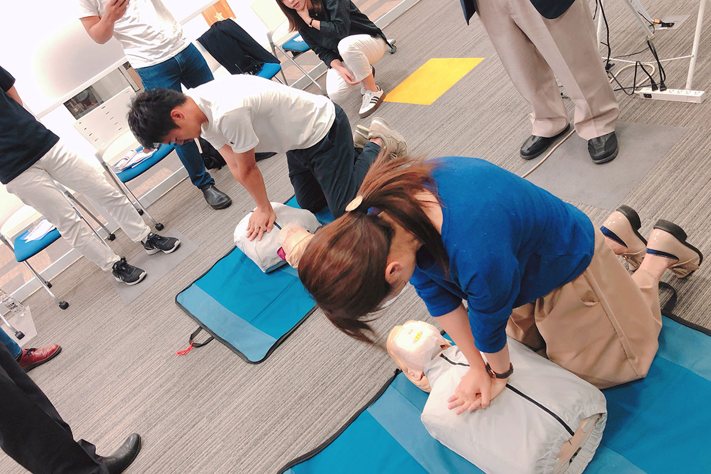 弊社には、「もしも」のことがあっても即座にAEDを使った救命活動が出来るメンバーが、約20人います。