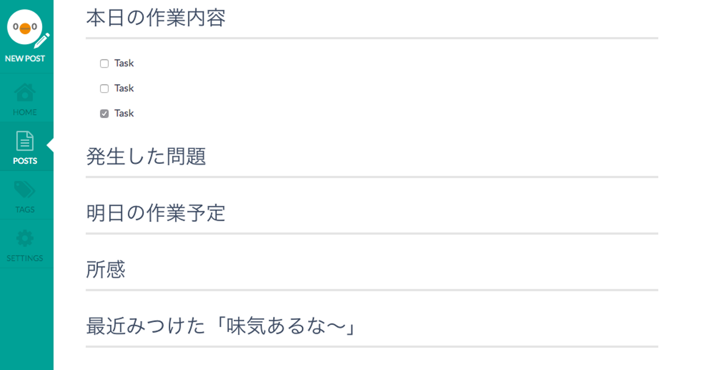 日報は毎日、情報共有サービス「esa」にあげて全社でオープンにしています。日報には、日々のタスクや1日の気付きなどをまとめています。