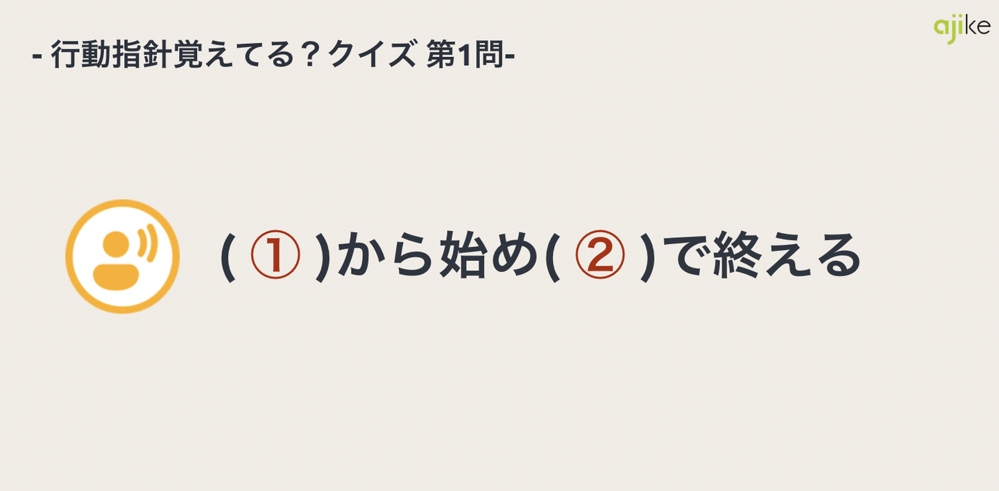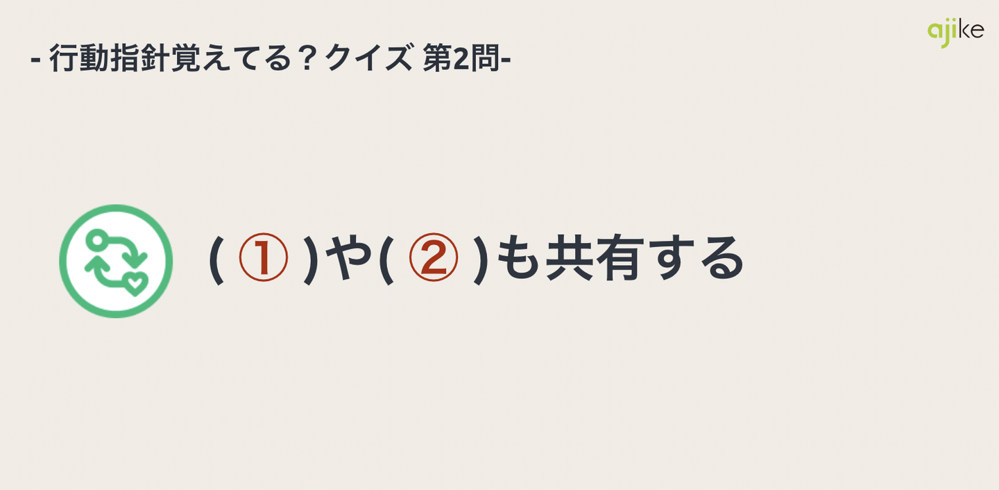 新行動指針の制定から約6ヶ月が経つタイミングであった8月は、楽しみながら、行動指針の内容を改めてインプットしていただくため「- 行動指針覚えてる?クイズ -」を開催。