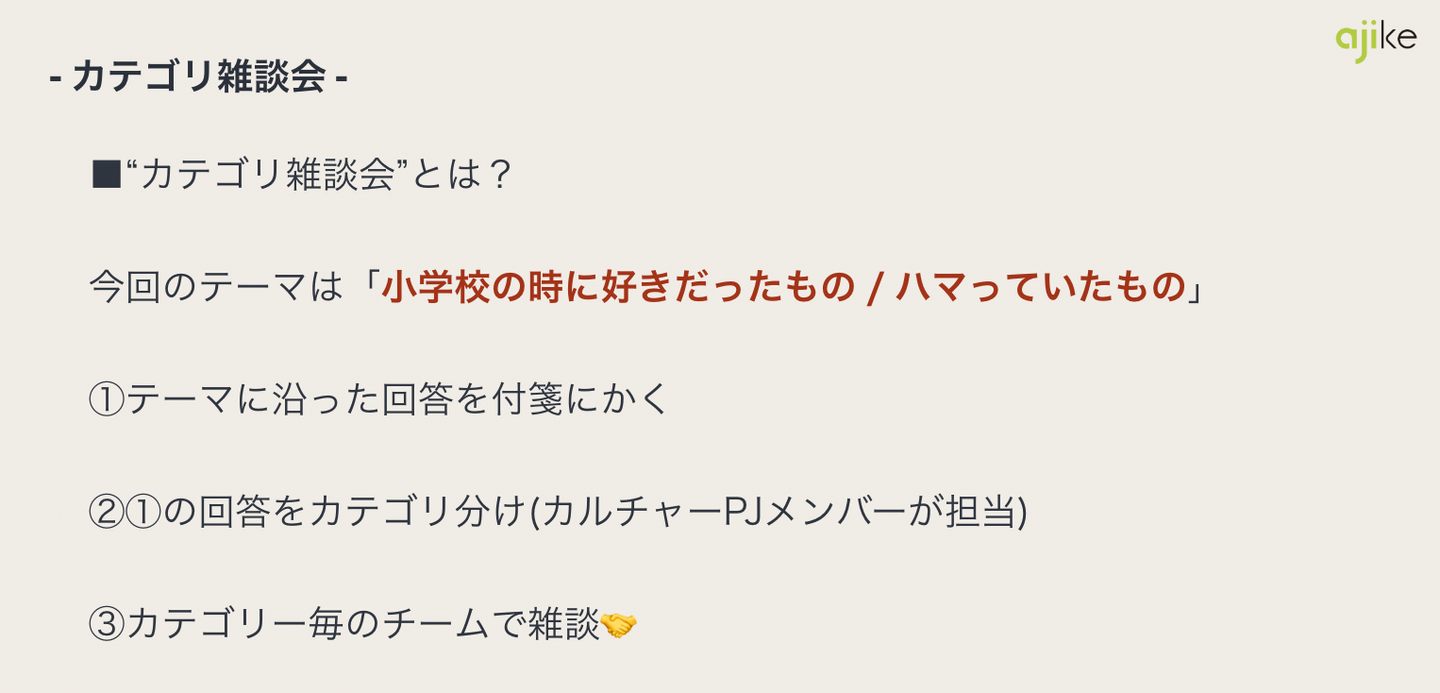 2つ目のアジェンダでは「カテゴリ雑談会」を開催しました。
