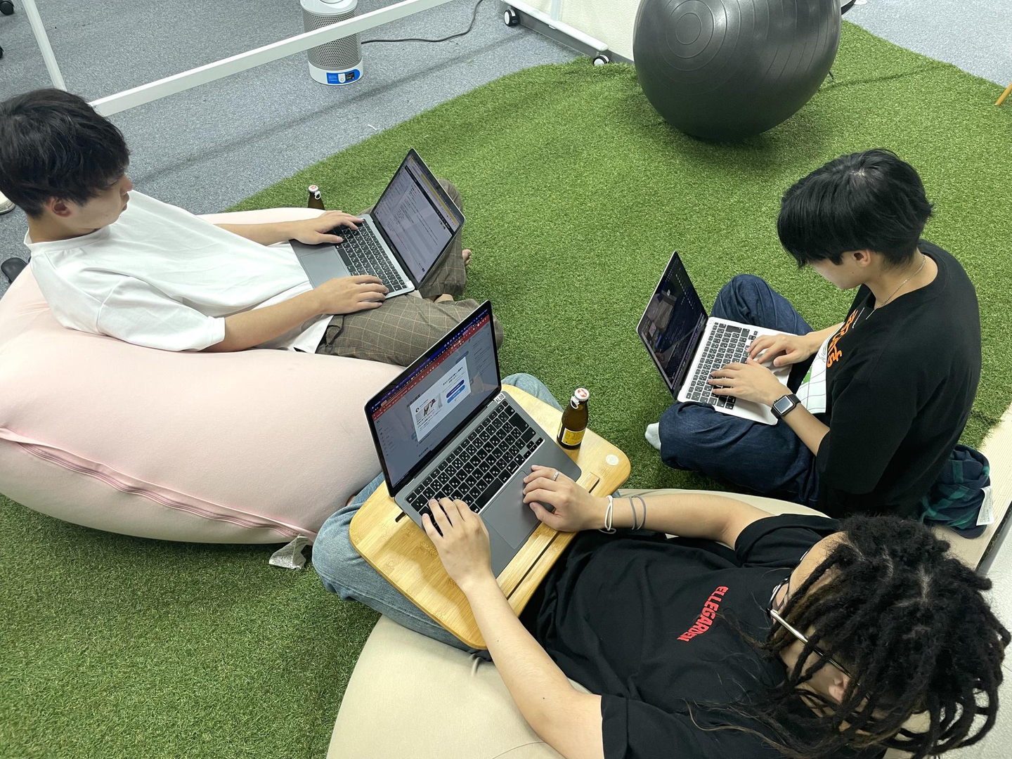 入社して気づいたんですけど放課後みたいな感じで、帰る人もいるし、作業する人もいるし、各自が好きなことをしながら会社に残ってます笑