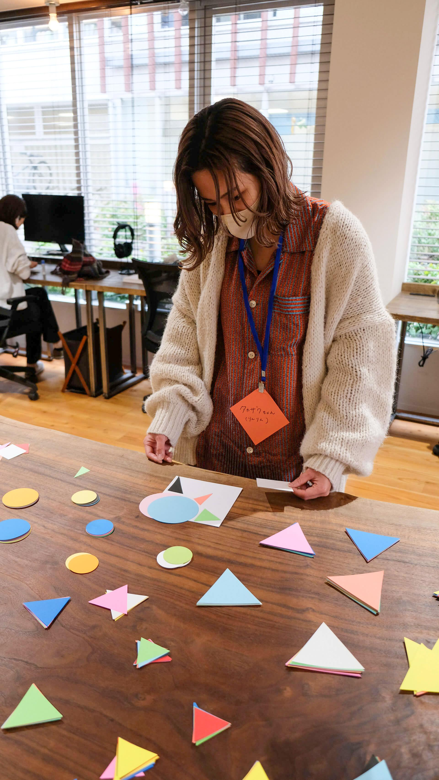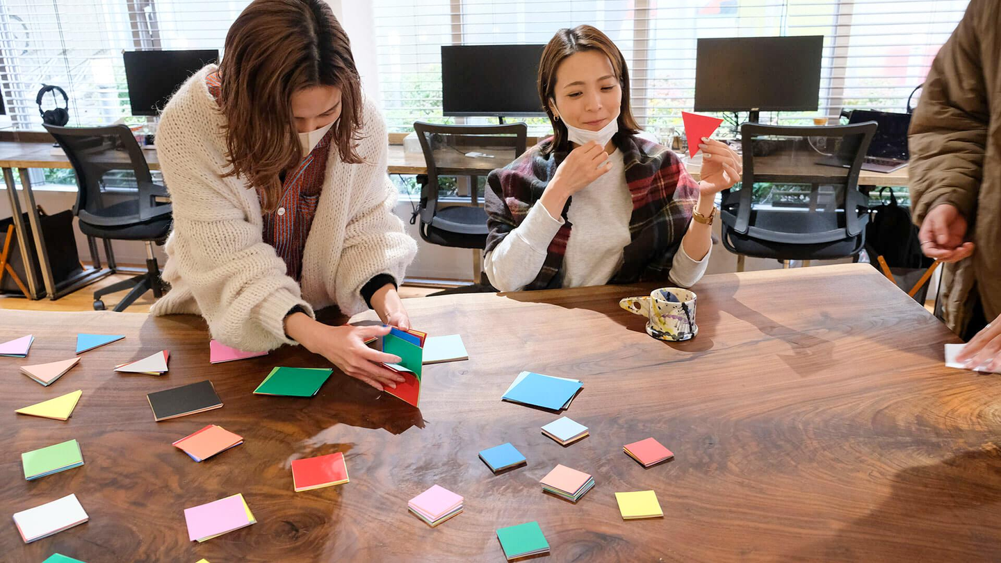 選べる画用紙が1枚なので、自分の特徴を吟味して、他の参加者に「自分ってこんな人です!」というのを知ってもらうために、良いカタチや色を選ぶのに皆さんかなり悩んでいる様子…!