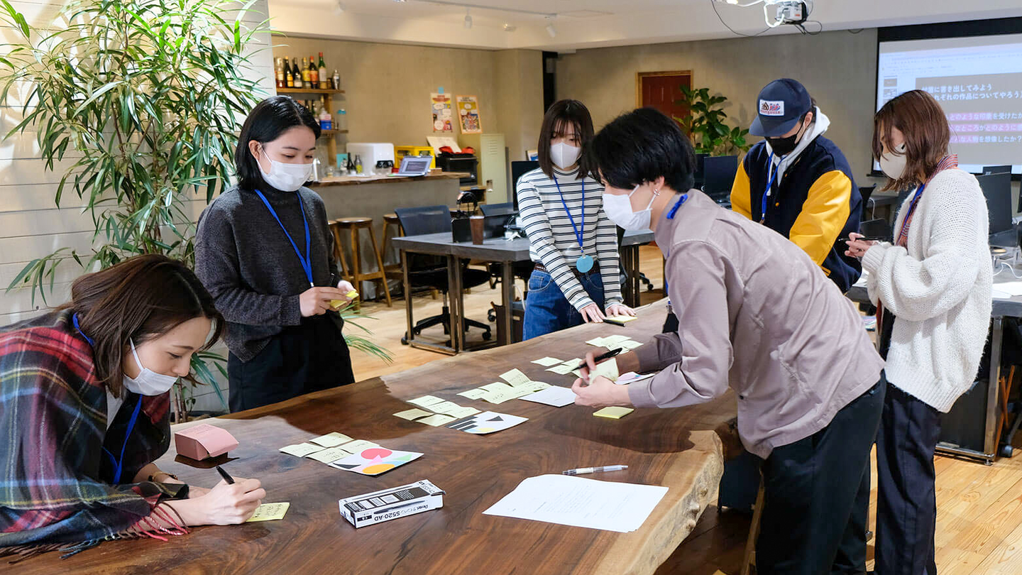 メインのワークが終わった人から制作物を1度回収して、どの制作物が誰のものかわからない状態で鑑賞をします。