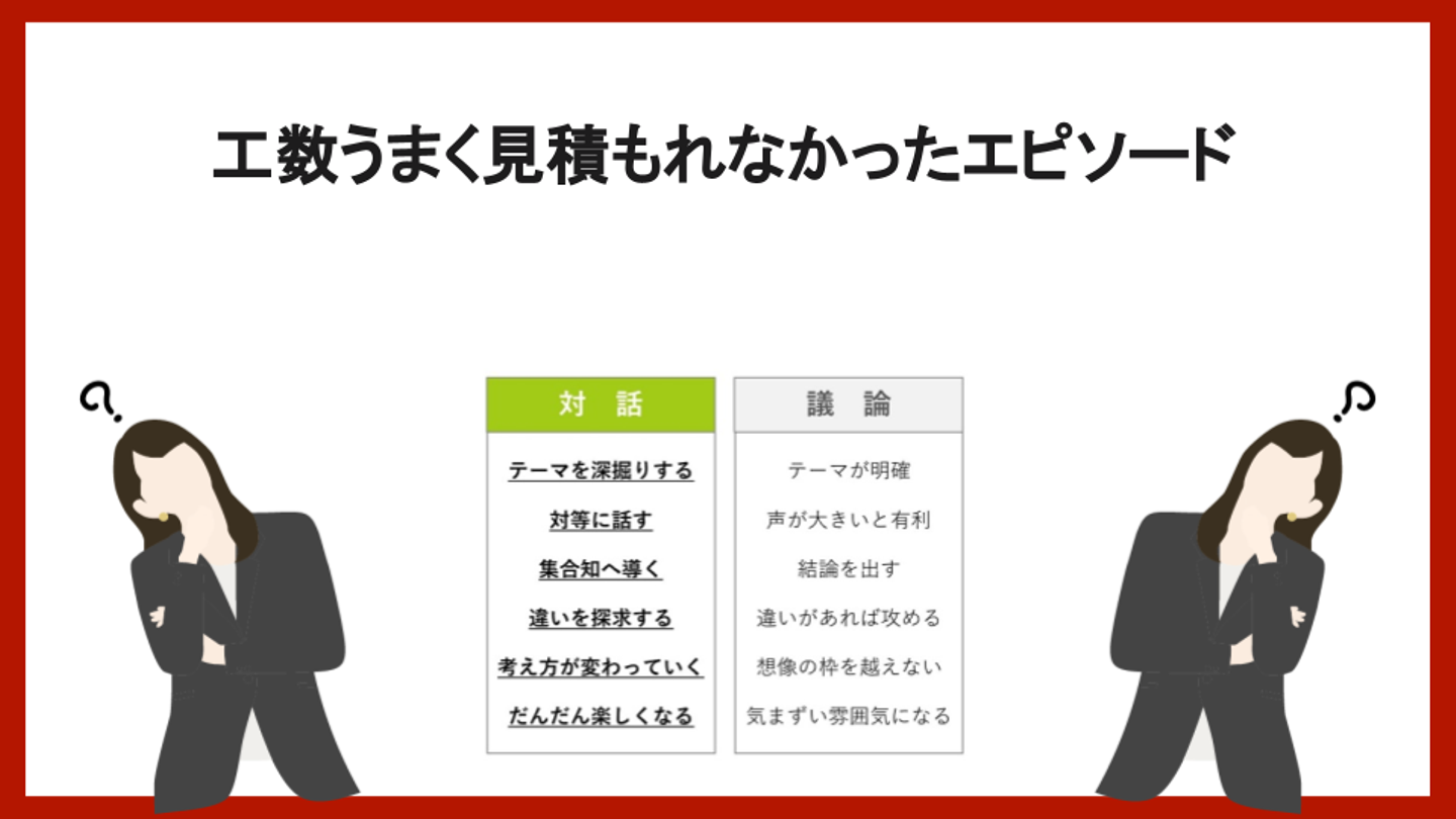 まずは工数をうまく見積もれたエピソードについて対話をしました。