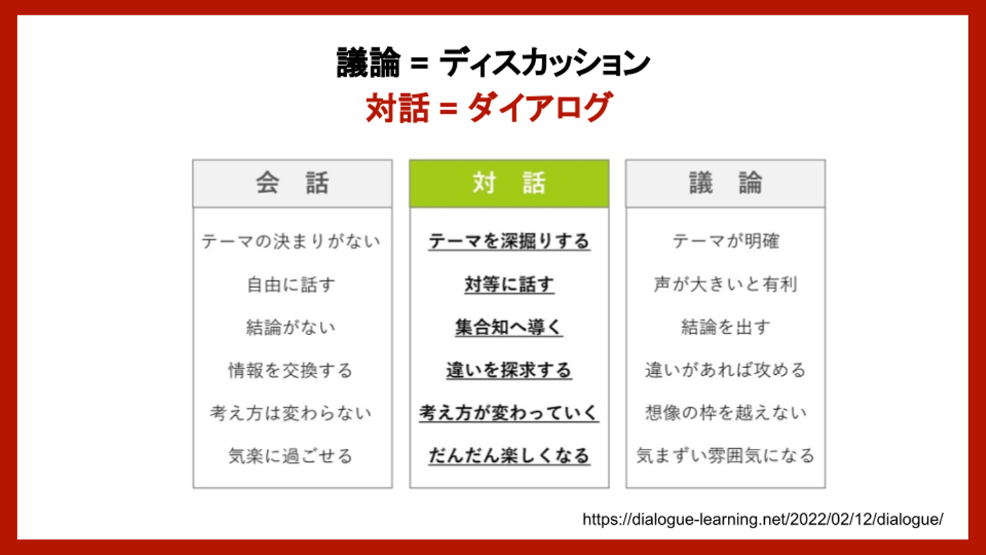 ダイアログ:相手の話に正解/不正解はなく、相手がなぜそう思うのかを深掘りすることを目的としている