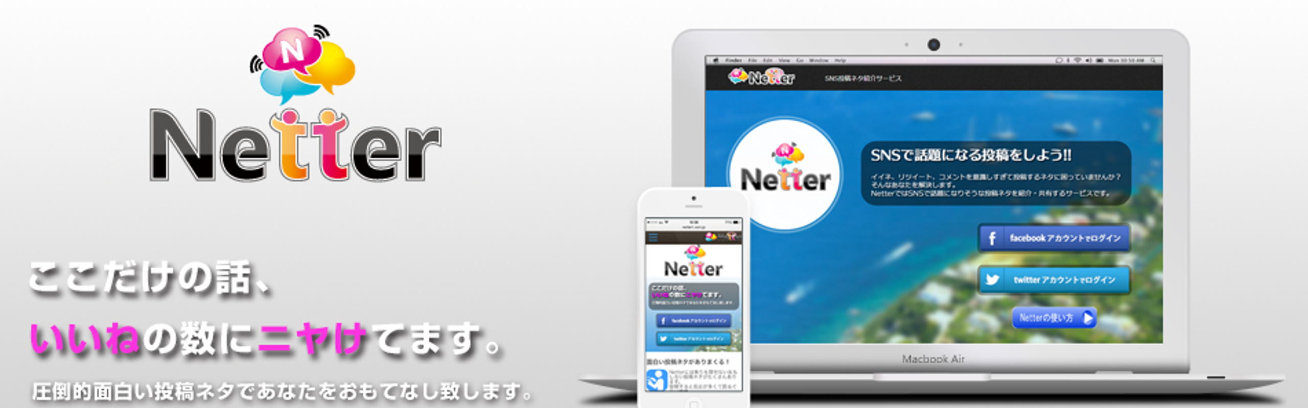 面白ことをひたすら求める元気あふれる会社です! 仕事という感じが3mmもしません! オフィスは渋谷と横浜にあります! 仲がいいです!あとはロボットレストランへ行ったりココ壱へ行ったりとNetterのネタを無料で参加できる福利厚生付きです! トラブルを楽しもうー! 企業理念 「人の生きる希望となる生きがいを作り出す」