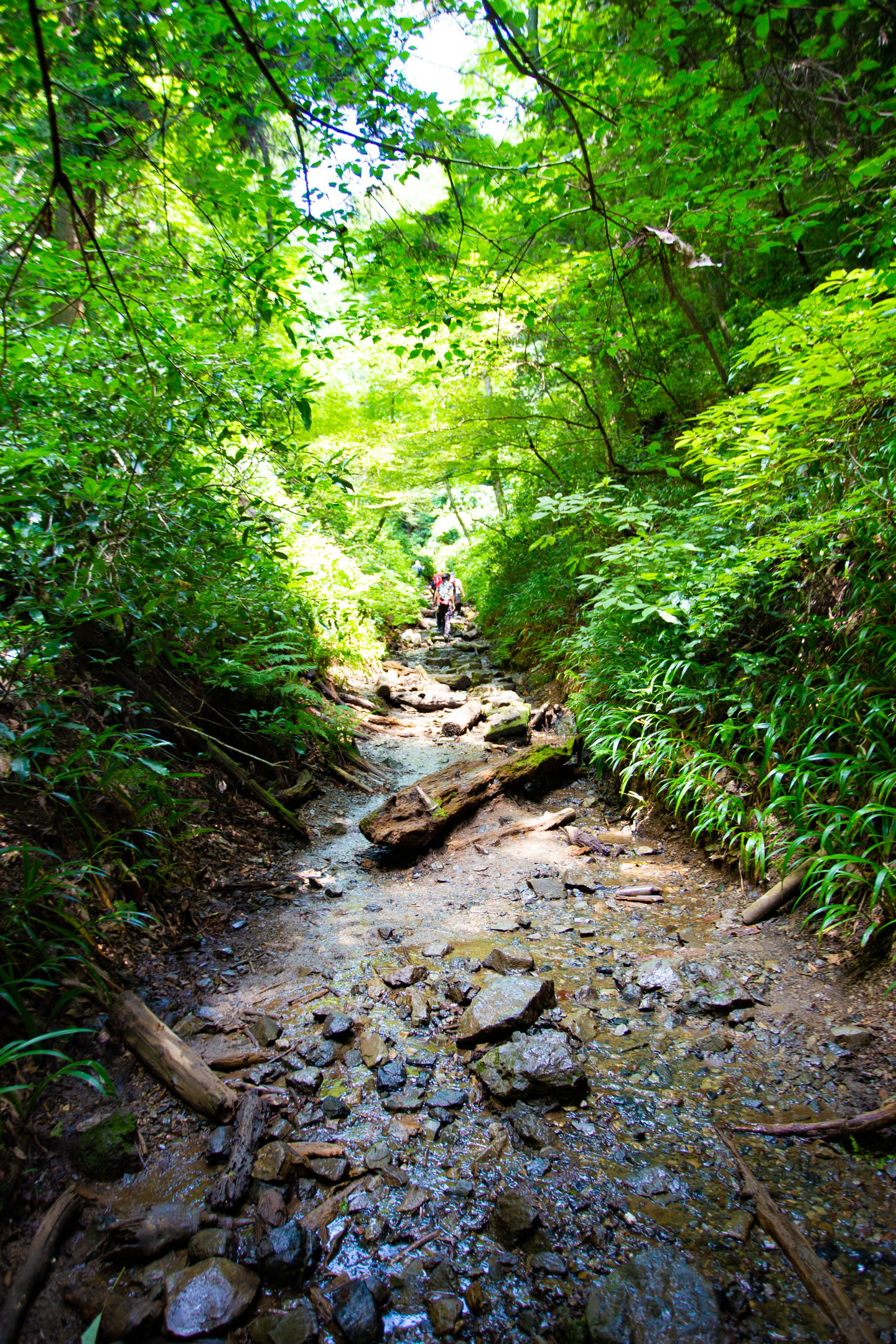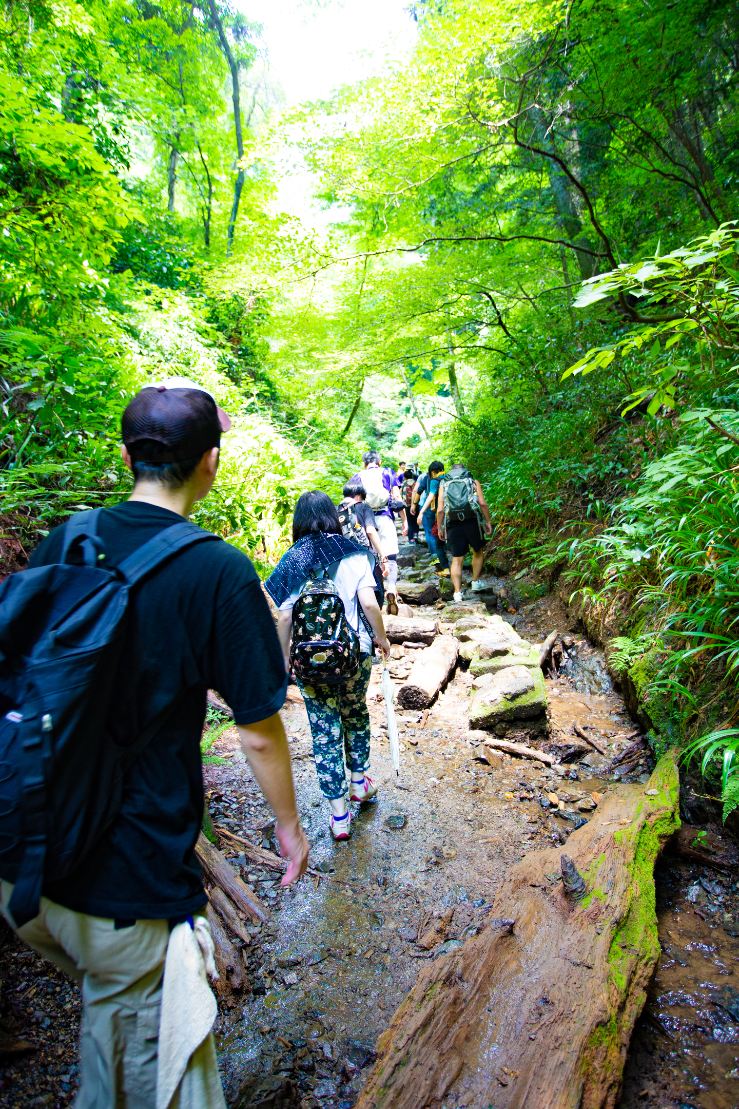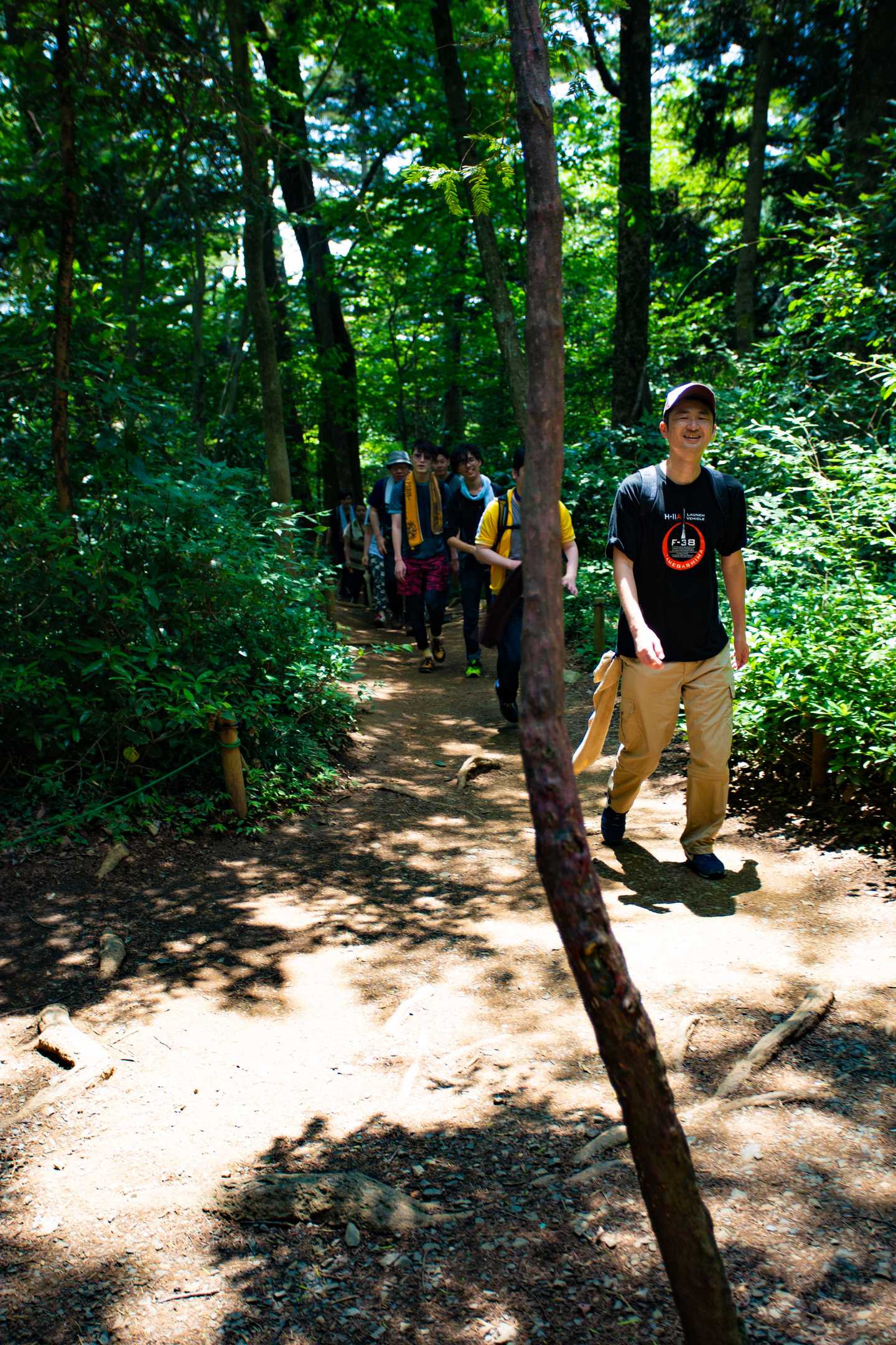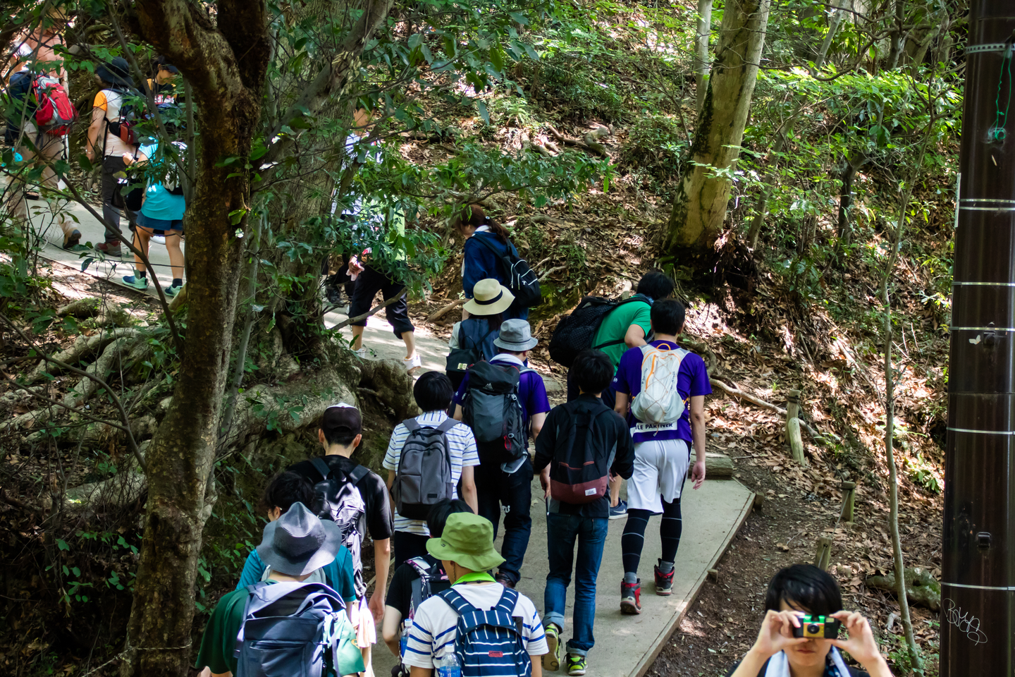 ハイキング気分の1号路と自然の中を突き進む6号路の二手に分かれてそれぞれ山頂にむけ出発!