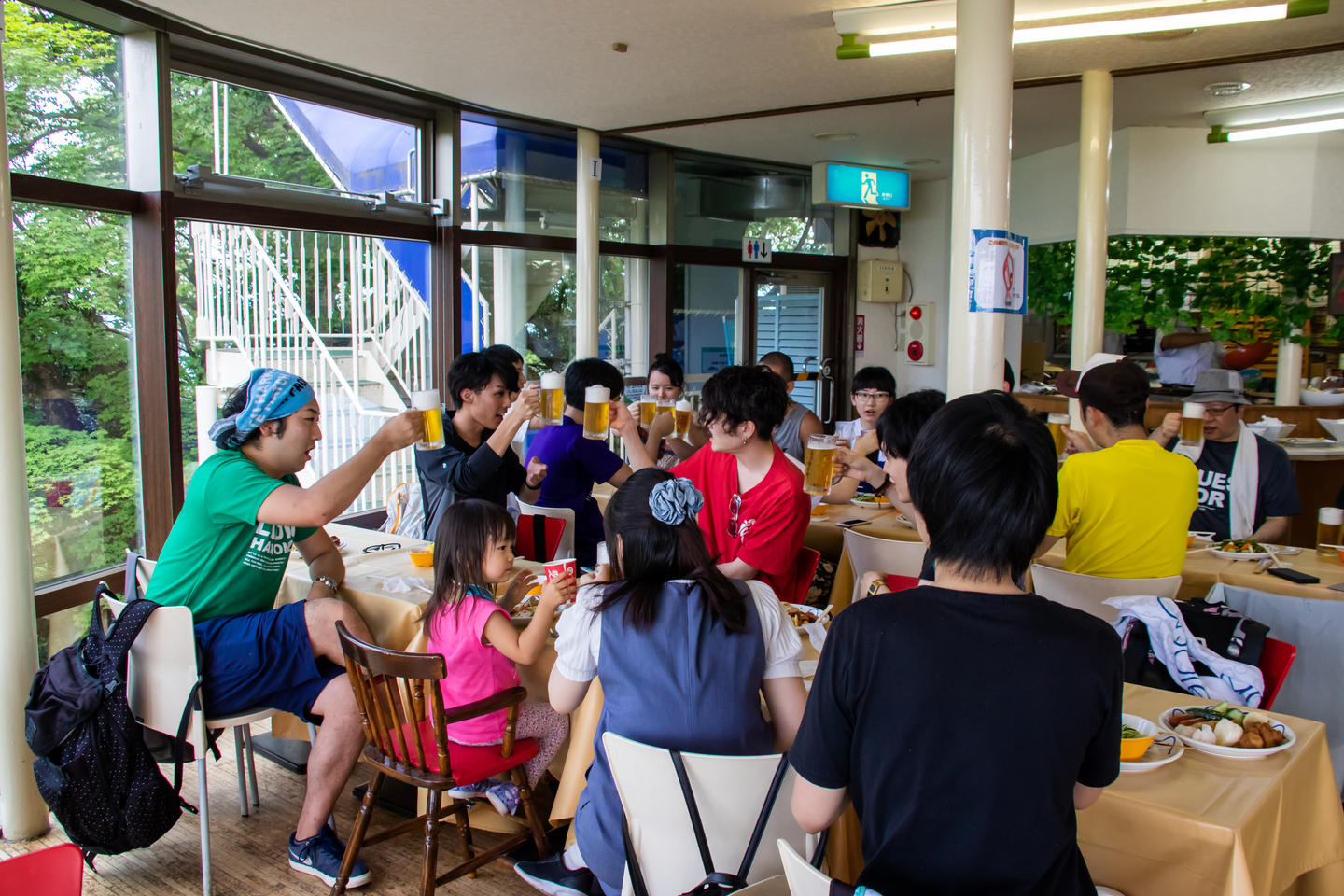 さぁがんばった分の体力はキンキンに冷えたビールと美味しいごはんで体力回復です!