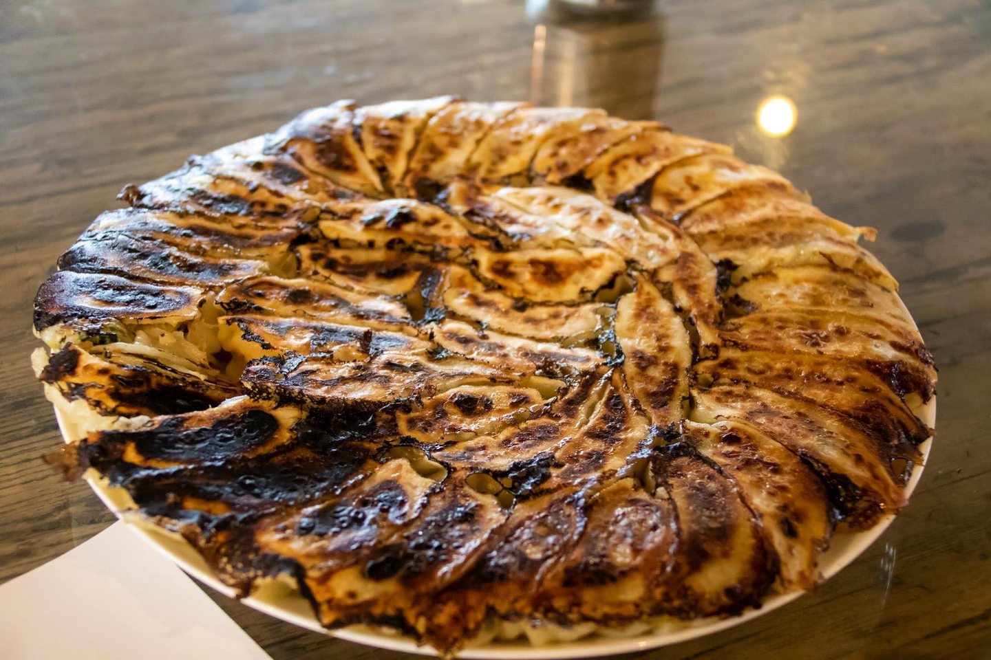 この綺麗な円状に並べられ、美味しそうな焼き加減の餃子!!